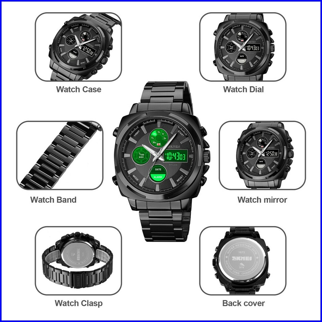 Skmei 1673 Jam Tangan Pria Digital Analog Chronograph Dual Time Anti Air Mgos