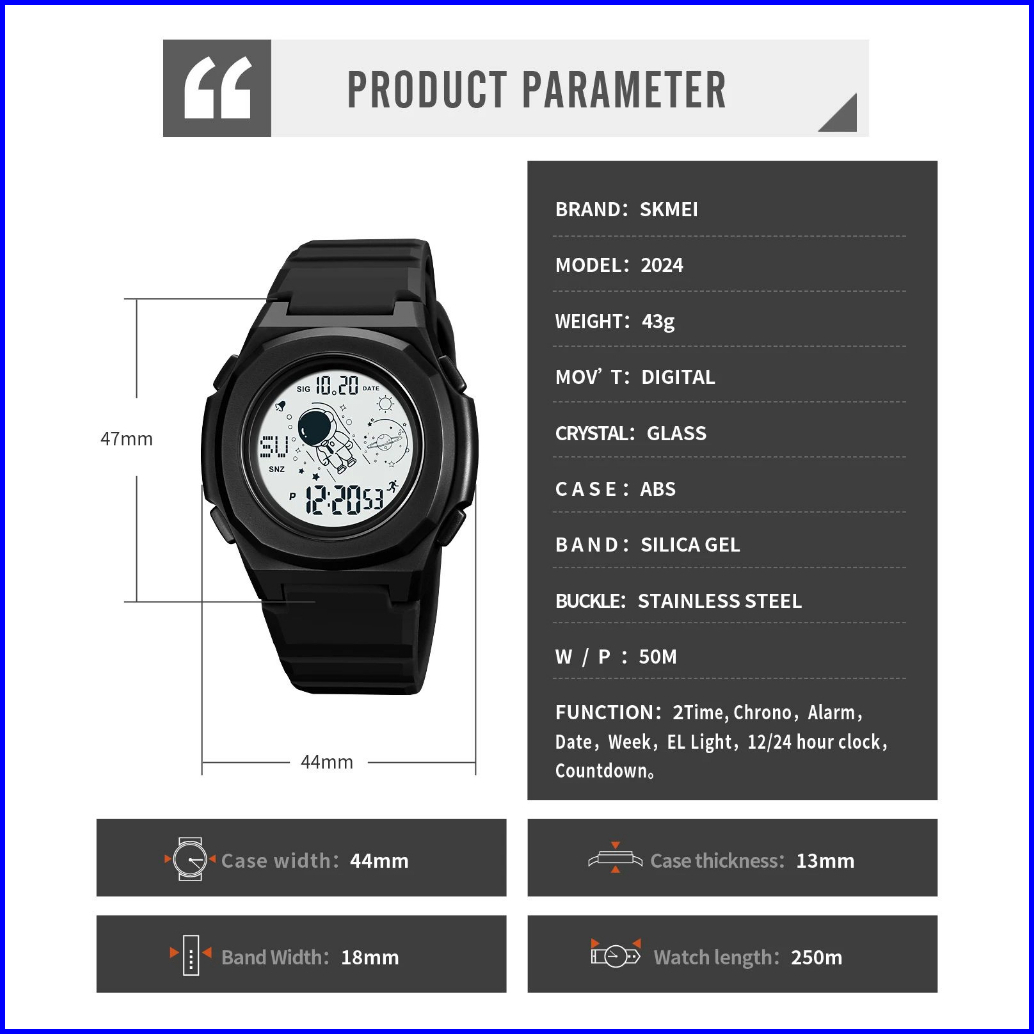 Skmei 2024 Jam Tangan Pria Wanita Digital Astronout Anti Air 5 Bar Mgos