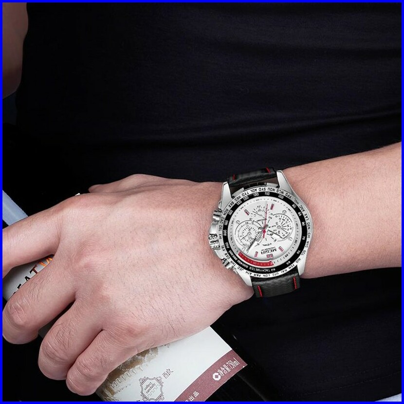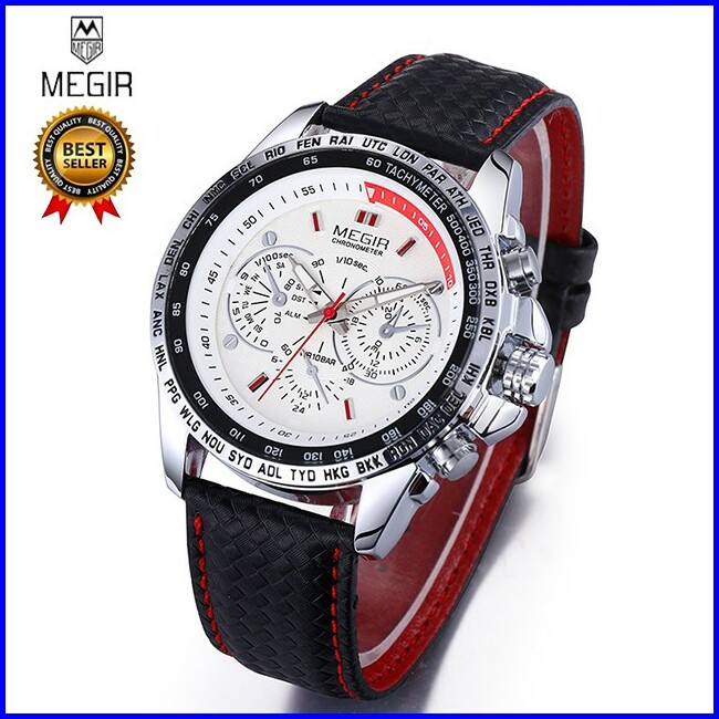 Megir 1010 Jam Tangan Pria Analog Tali Kulit Mgos