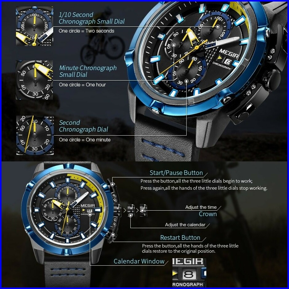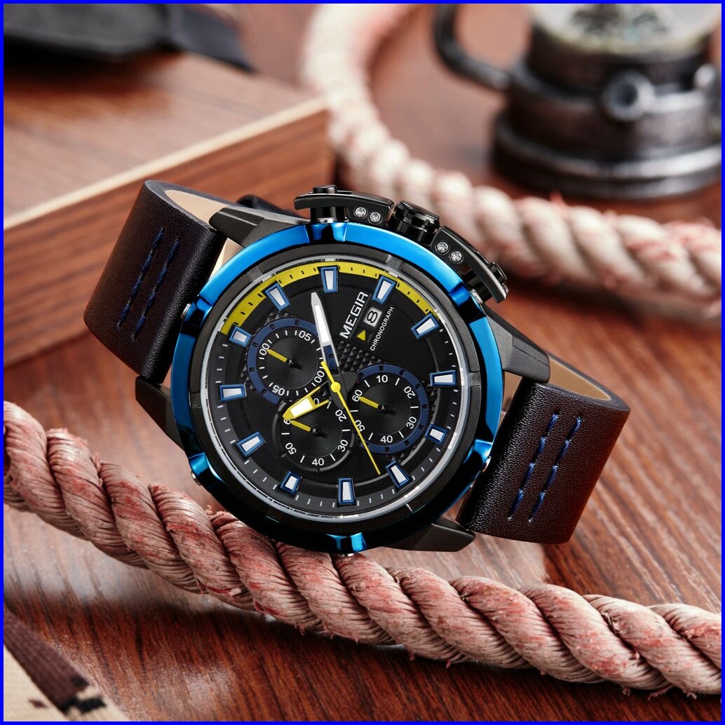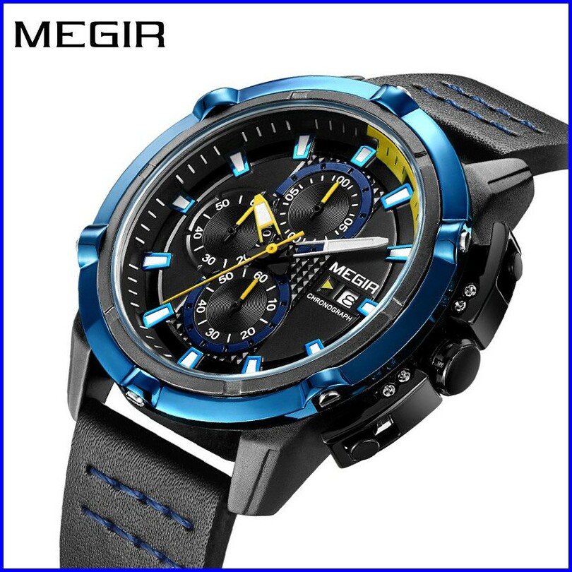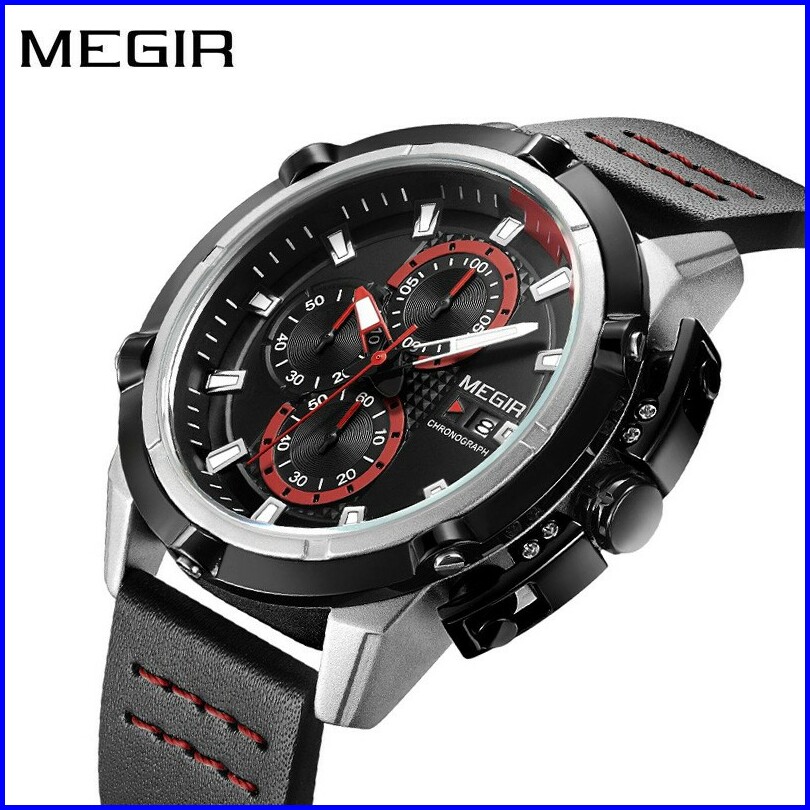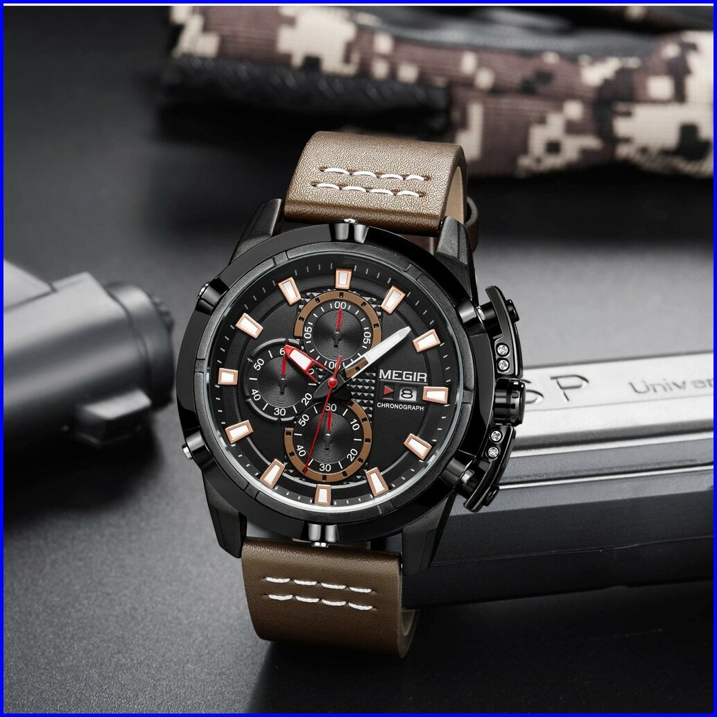Megir 2062 Jam Tangan Pria Analog Chronograph Tanggal Aktif Tali Kulit Mgos