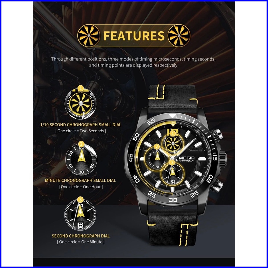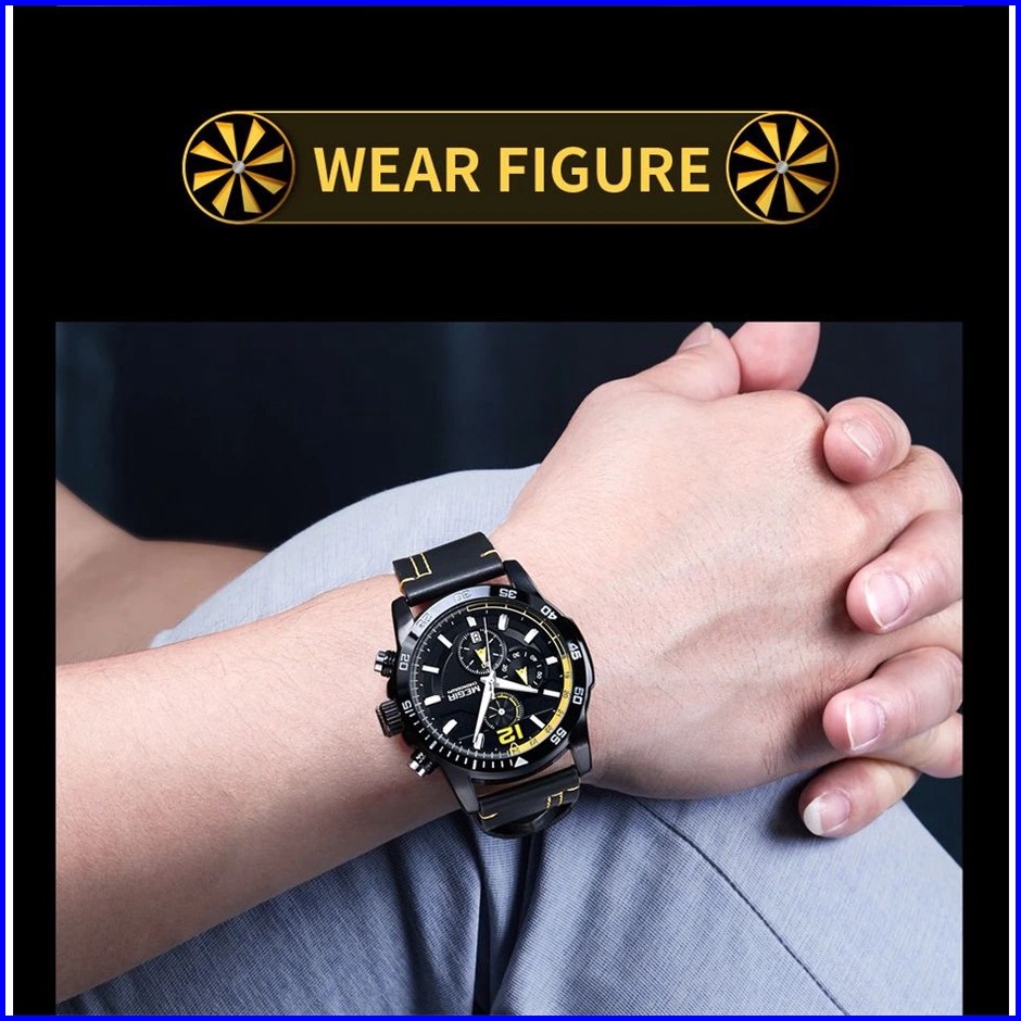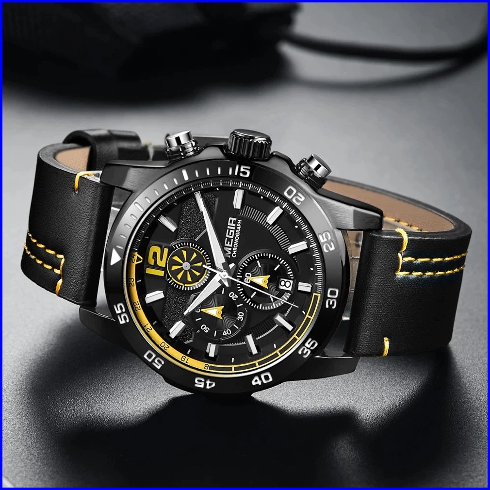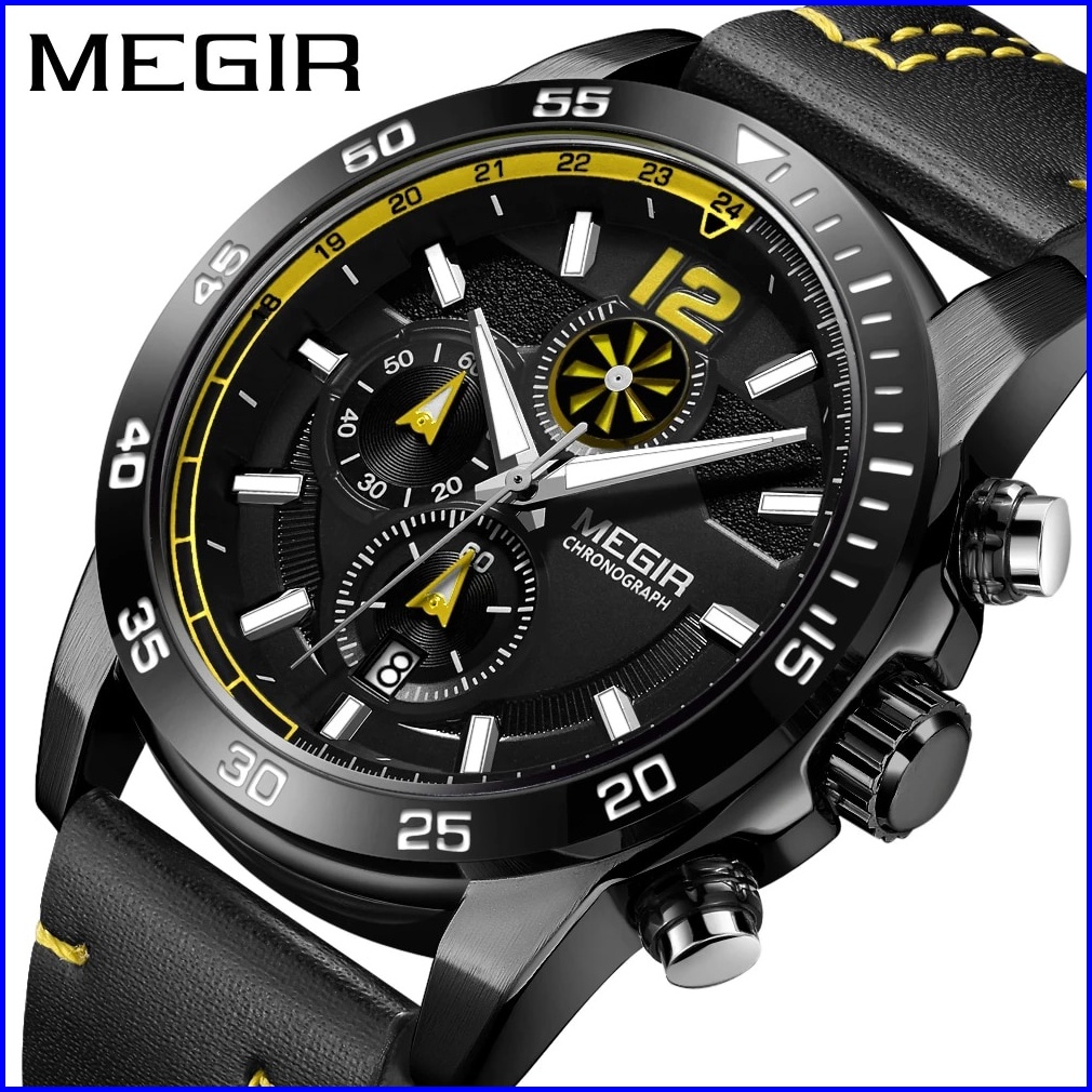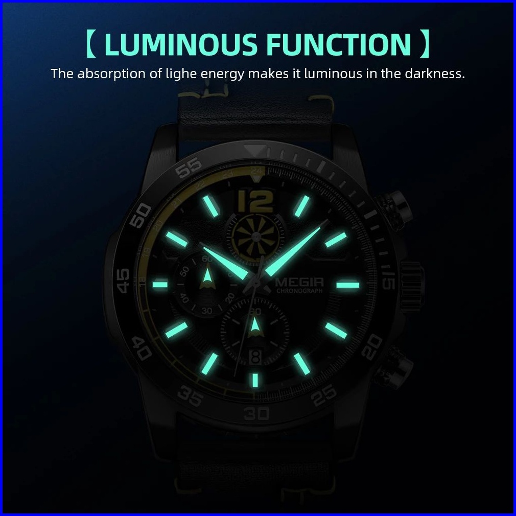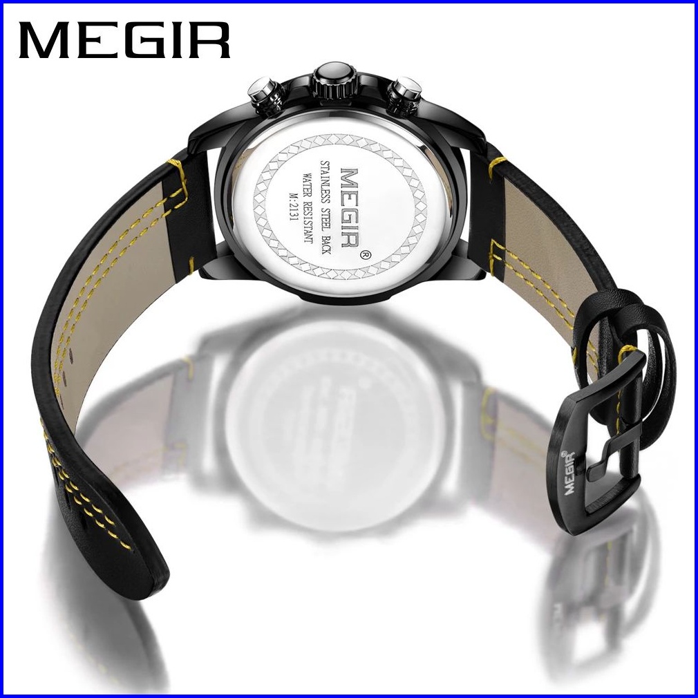 Megir 2131 Jam Tangan Pria Analog Chronograph Tali Kulit Luminous Mgos