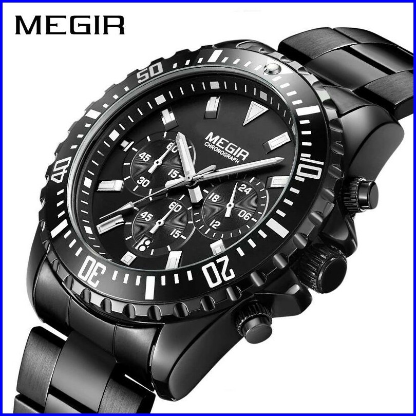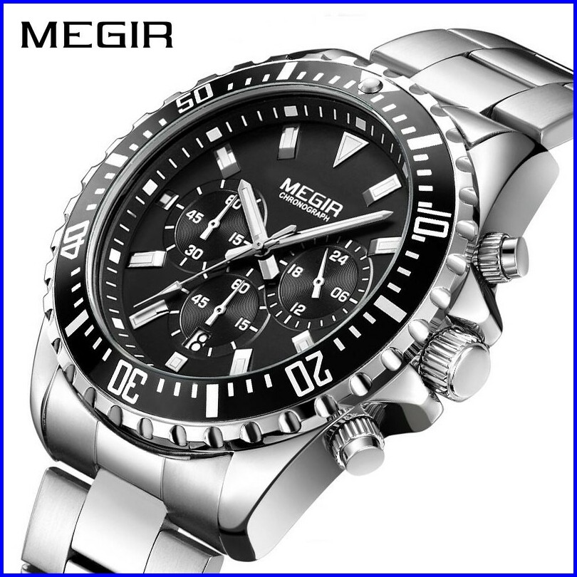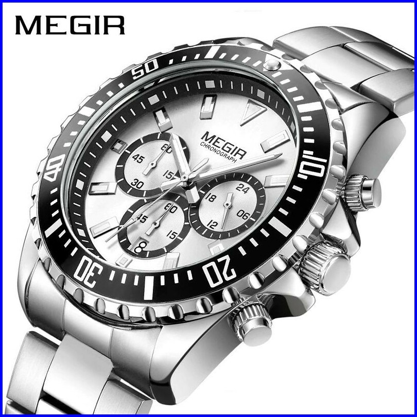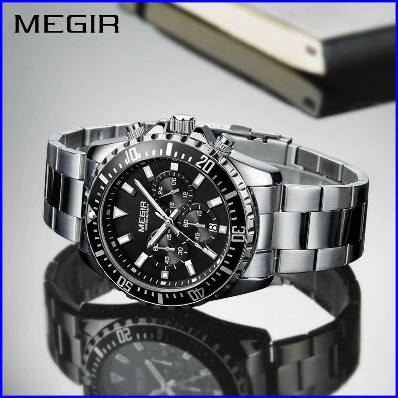 Megir 2064 Jam Tangan Pria Analog Chronograph Tali Stainless Luminous Mgos