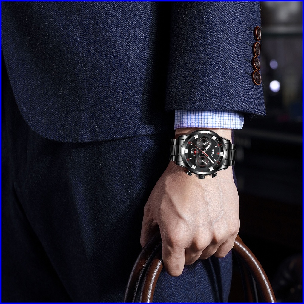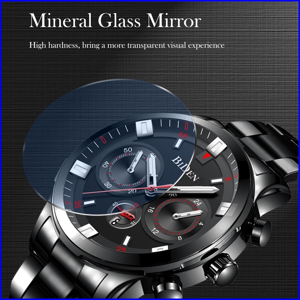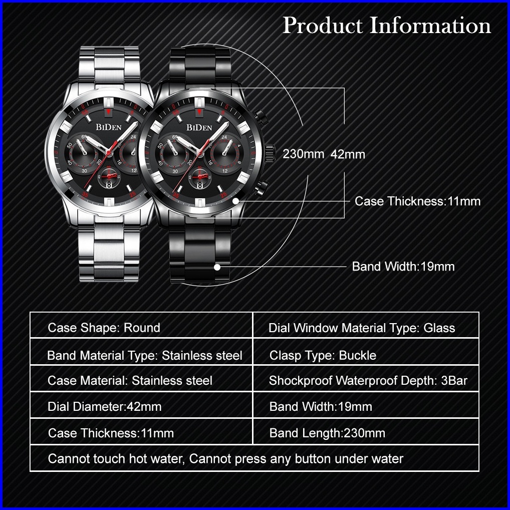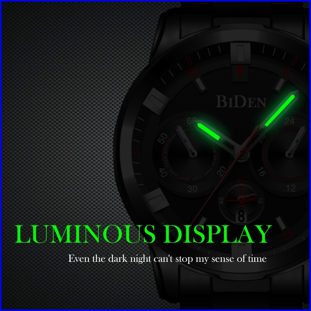 Biden Jam Tangan Pria Anti Air Original Aanalog Jam Tangan Cowok Tali Stainless Steel Kalender Santai Jam Pria