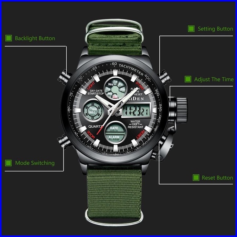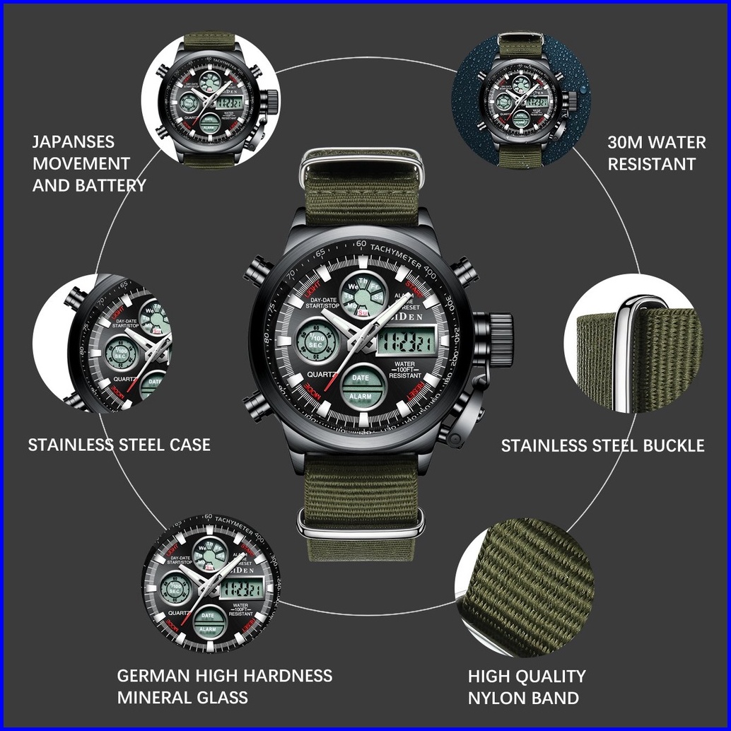 Biden Jam Tangan Pria Anti Air Militer Olahraga Tampilan Tanggal Chronograph Tali Kulit Tali Nilon Jam Tangan Cowok Orgi