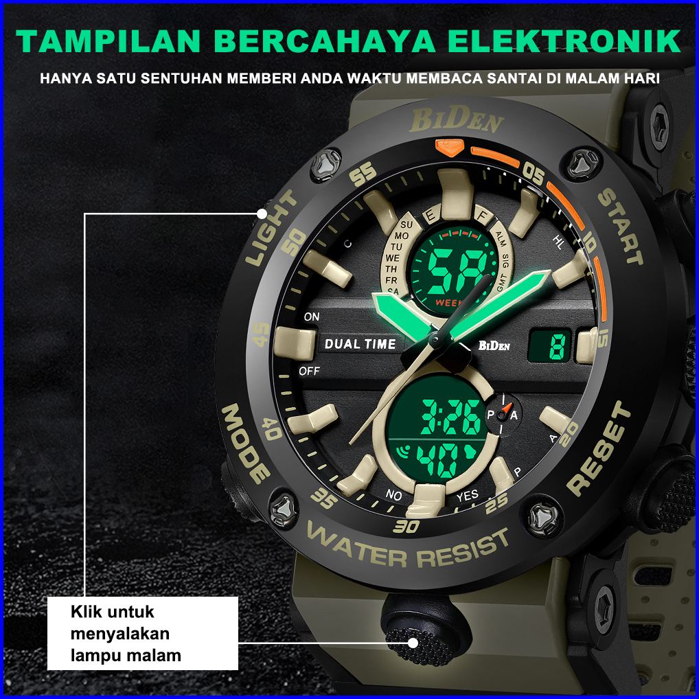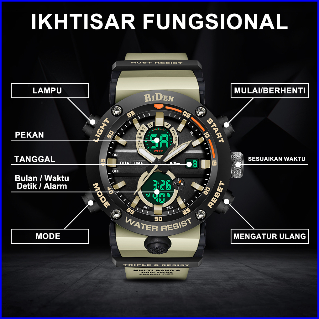 Biden Jam Tangan Pria Digital Analog Original Olahraga Multifungsi Alarm Anti Air Tali Silikon Jam Tangan Cowok
