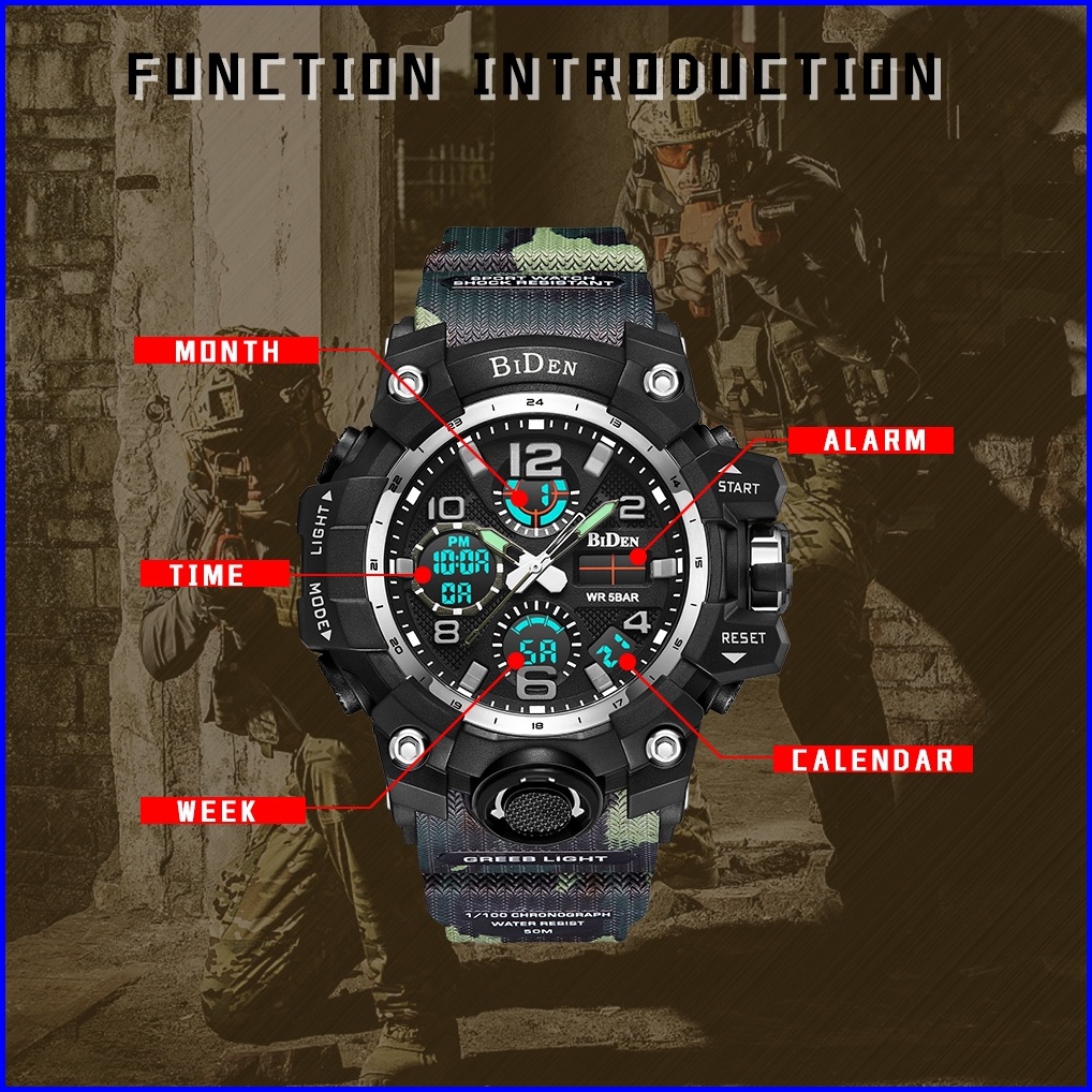 Biden Jam Tangan Pria Militer Olahraga Digital Analog Tali Silikon Anti Air Jam Tangan Cowok Original