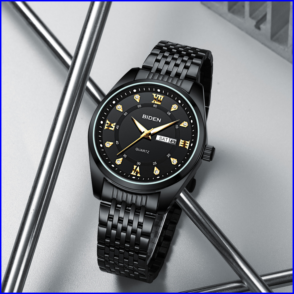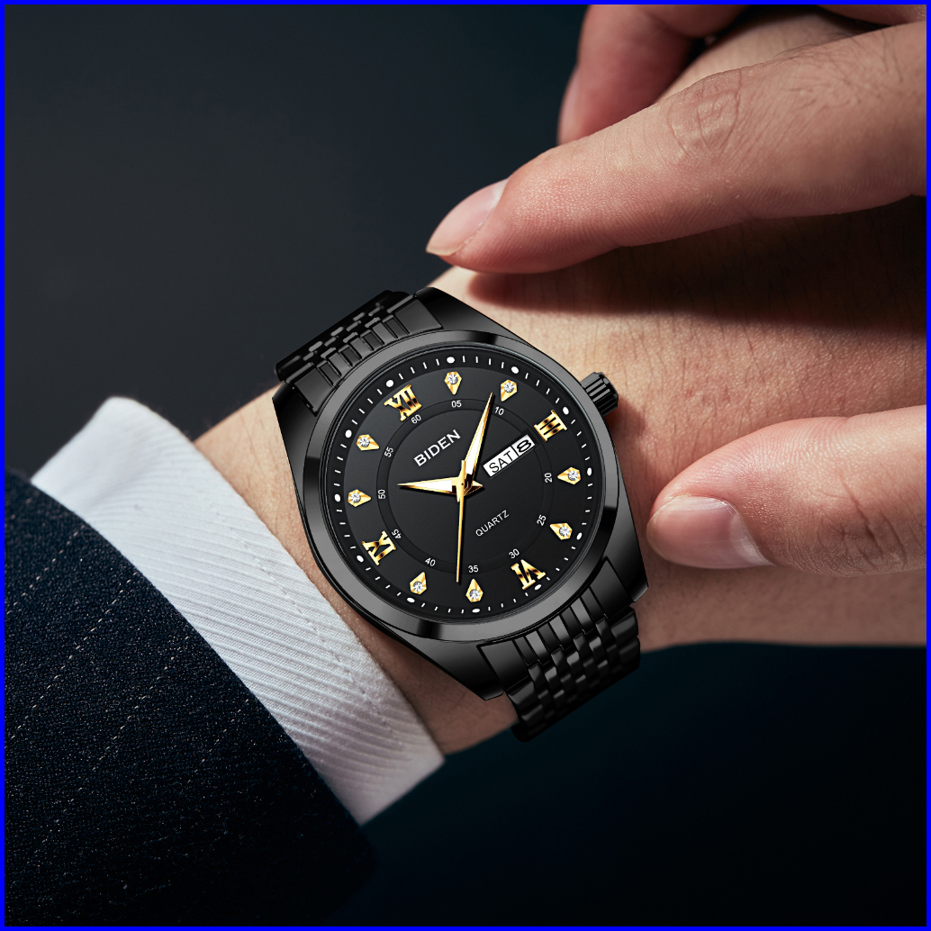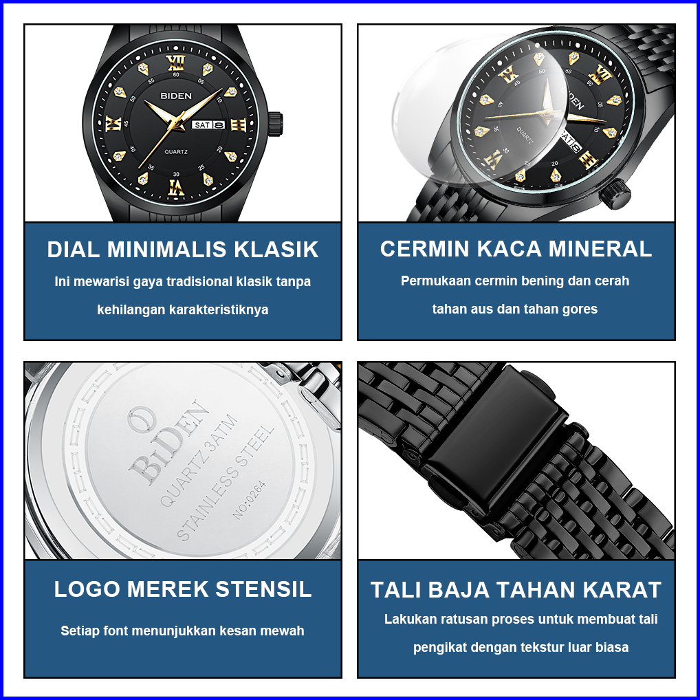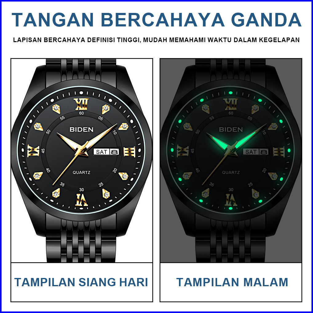 Biden Jam Tangan Pria Anti Air Original Kalender Bisnis Kasual Tali Stainless Steel Jam Tangan Cowok