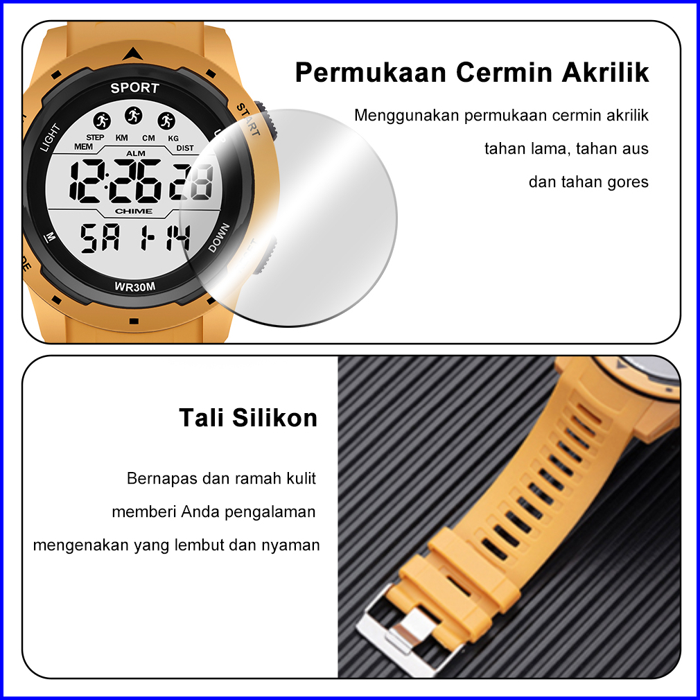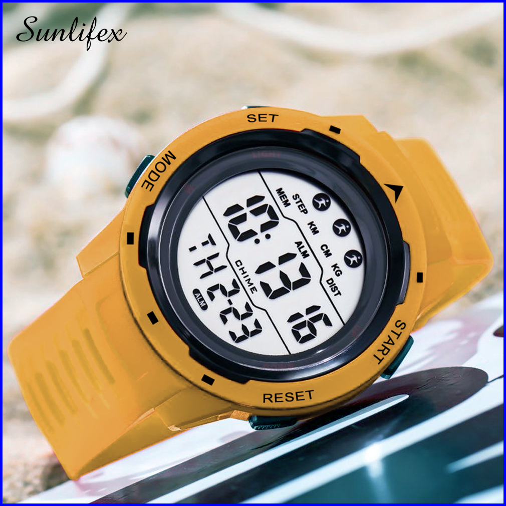 Sunlifex Jam Tangan Pria Digital Olahraga Mode Tali Silikon Alarm Jam Tangan Cowok