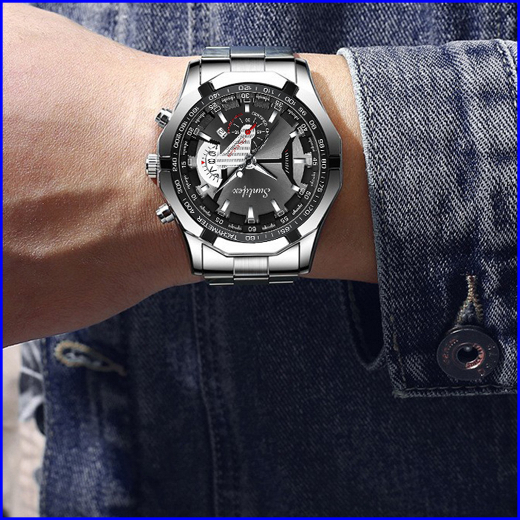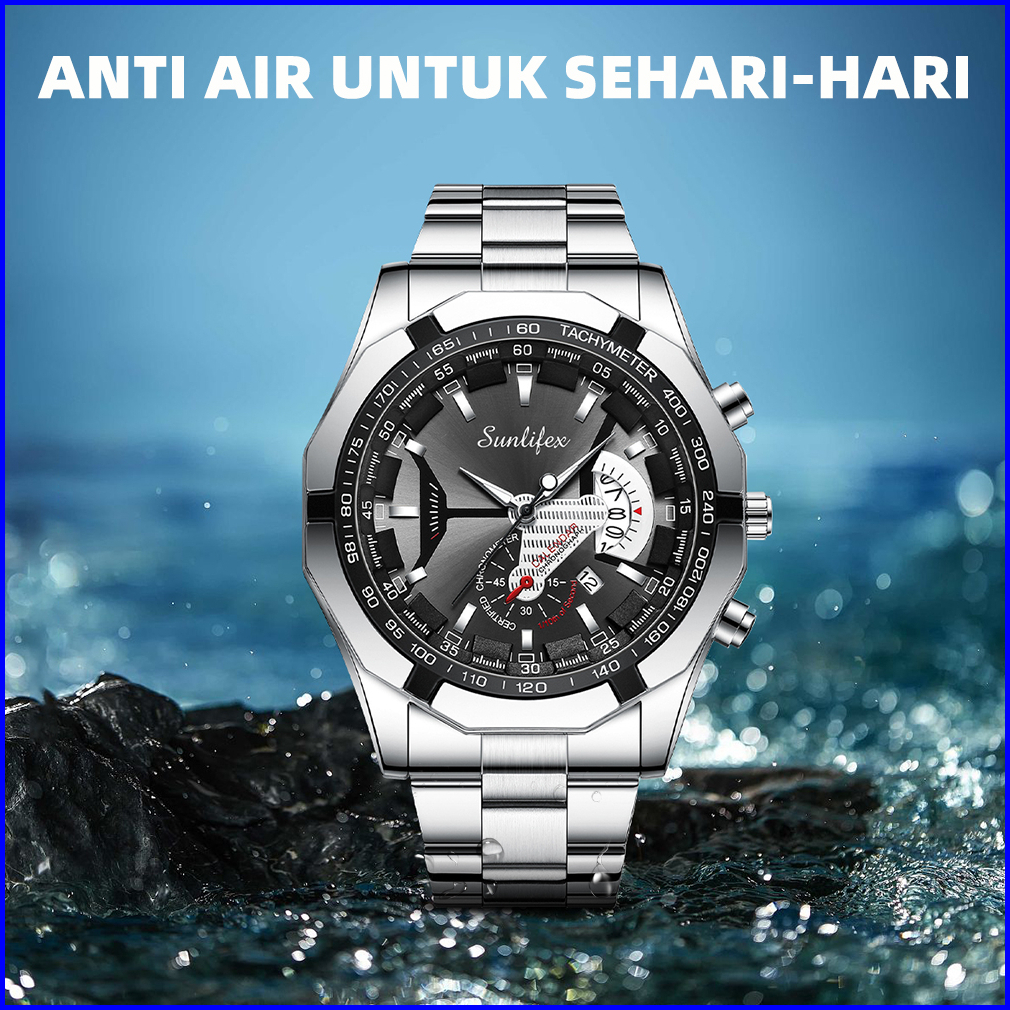 Sunlifex Jam Tangan Pria Anti Air Original Tali Stainless Steel Kuarsa Jam Pria