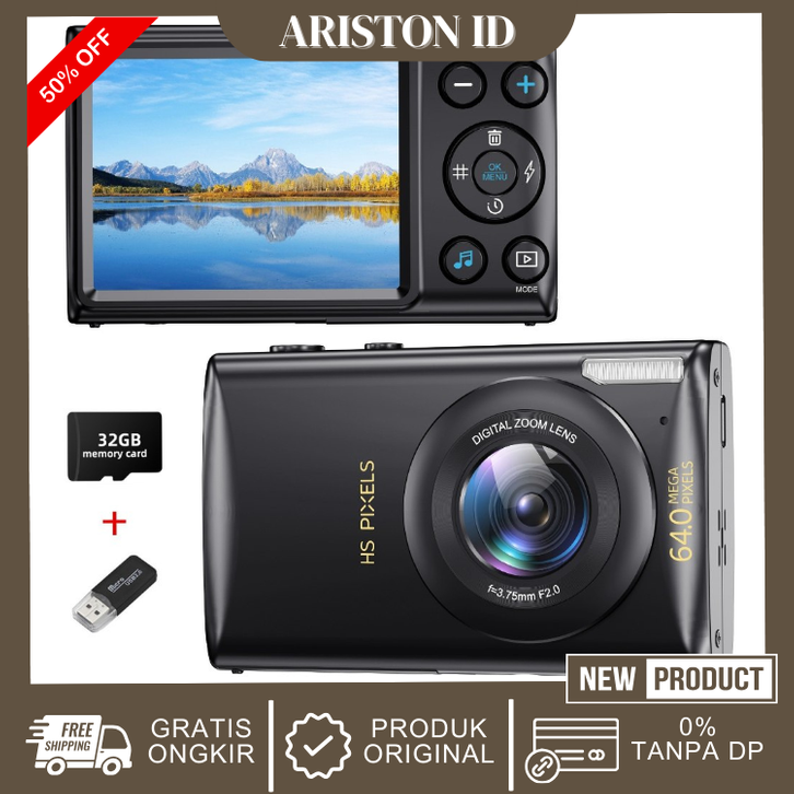 KAMERA DIGITAL 64MP Dengan Zoom 18X Kamera 2.8" screen Dengan Anti Guncangan, Sempurna Untuk Vlogging, Pemula Remaja