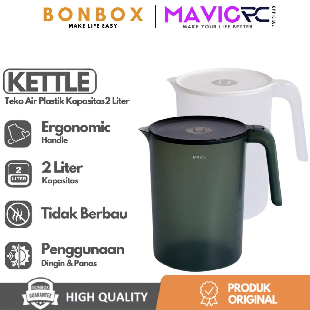 BONBOX BKL701 2 Liter Kettle Teko Plastik Tahan Dingin dan Panas Water Jug BFA Free Anti Tumpah Food Grade 2L Hitam