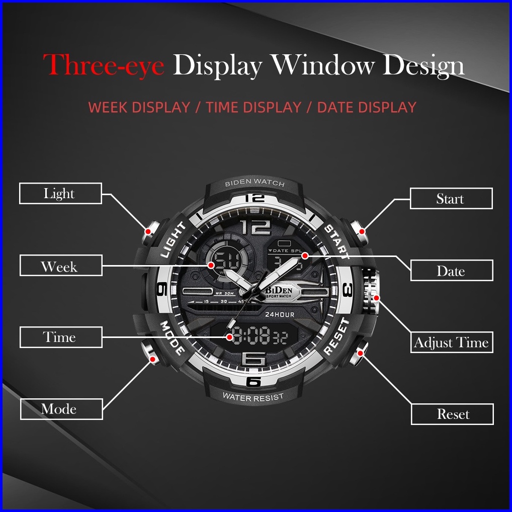 Biden Jam Tangan Pria Digital Anti Air Olahraga Tali Silikon Jam Pria Original Multifungsi Jam Tangan Cowok