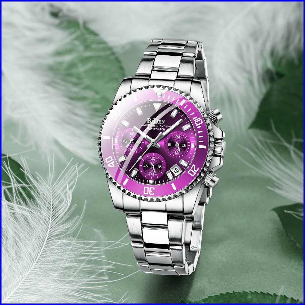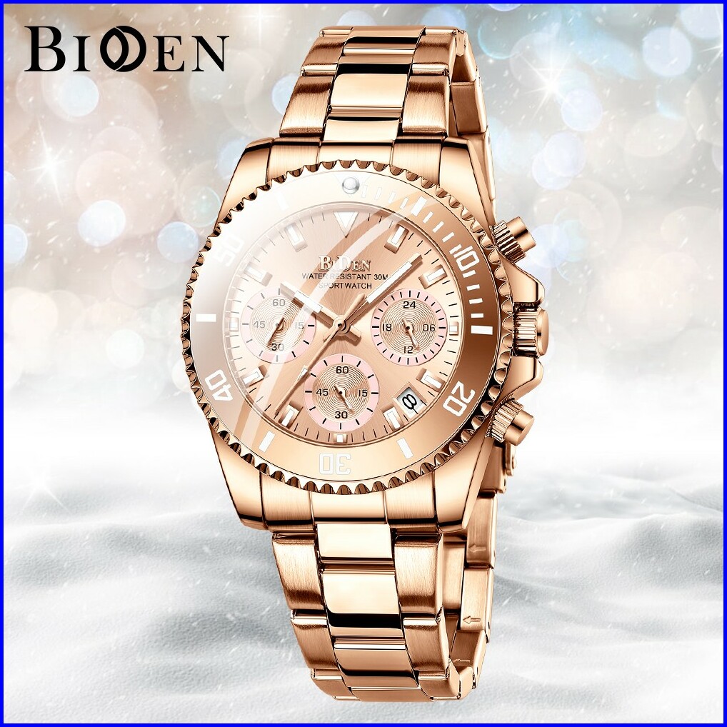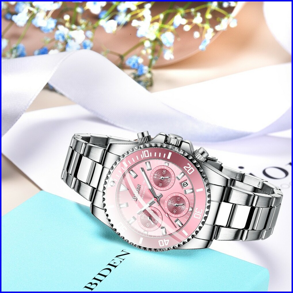 Biden Jam Tangan Wanita Anti Air Bisnis Mode Tali Stainless Steel Otomatis Date Kuarsa Jam Tangan Cewek Original