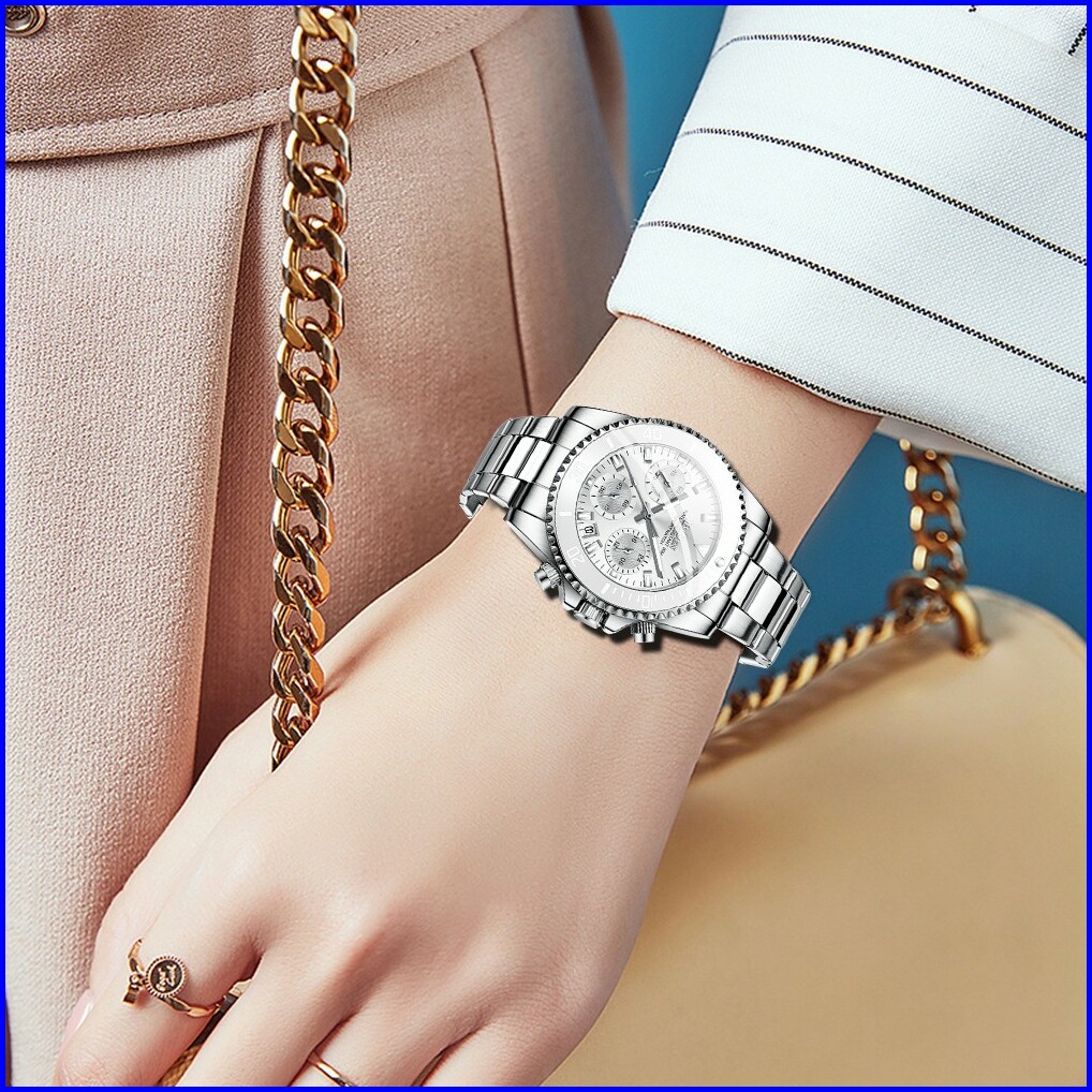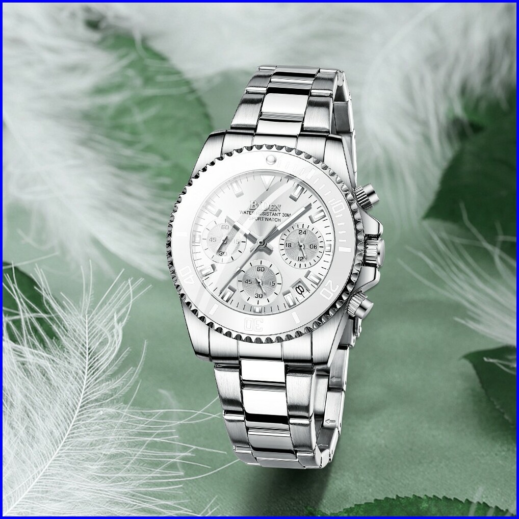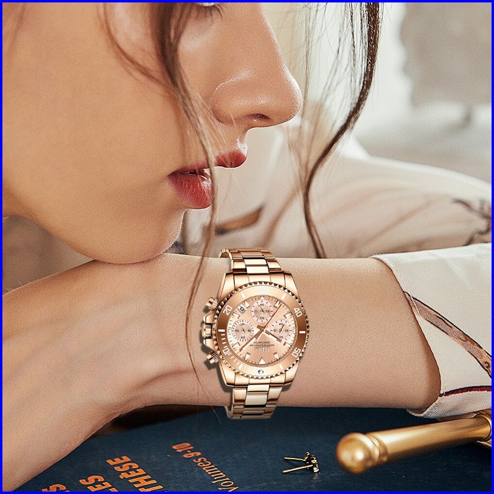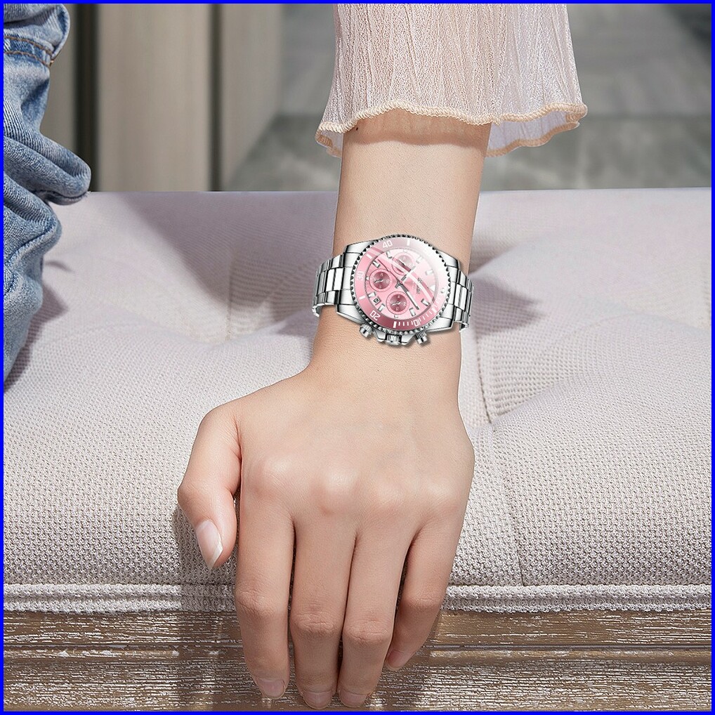 Biden Jam Tangan Wanita Anti Air Bisnis Mode Tali Stainless Steel Otomatis Date Kuarsa Jam Tangan Cewek Original
