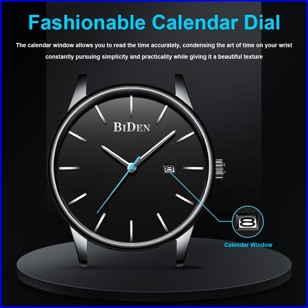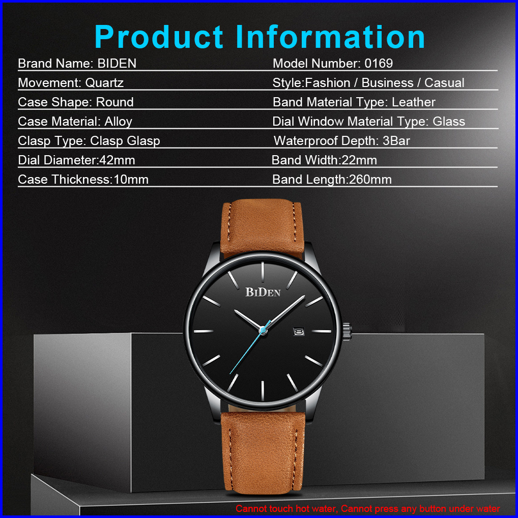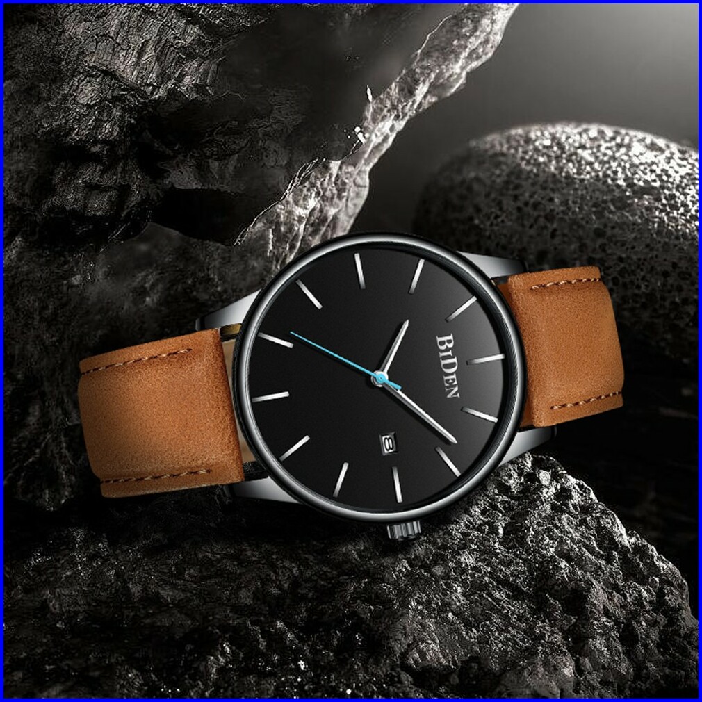 Biden Jam Tangan Pria Anti Air Santai Olahraga Kuarsa Jam Tali Kulit Otomatis Date Jam Tangan Cowok Original
