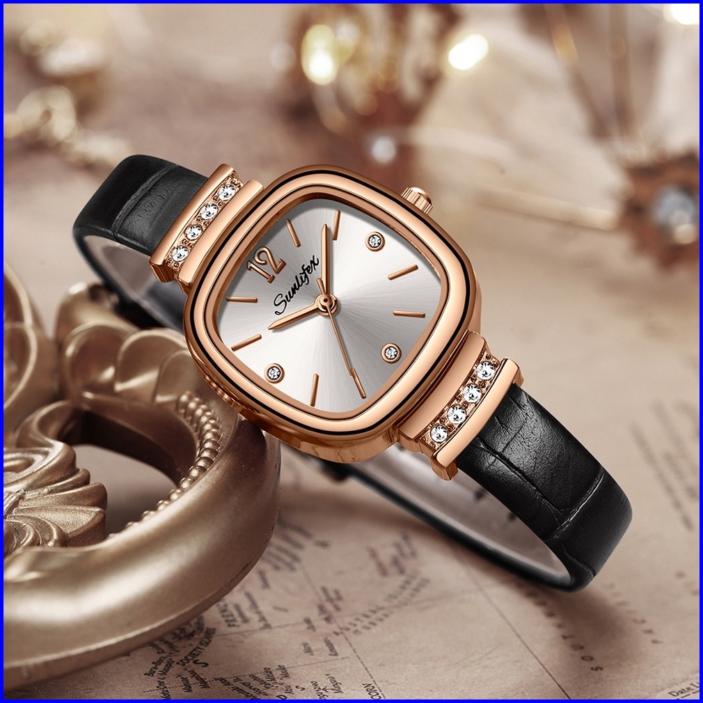 Sunlifex 8001 Jam Tangan Wanita Original Berlian Gaya Antik Anggun Jam Kuarsa Tali Kulit Jam Tangan Cewek
