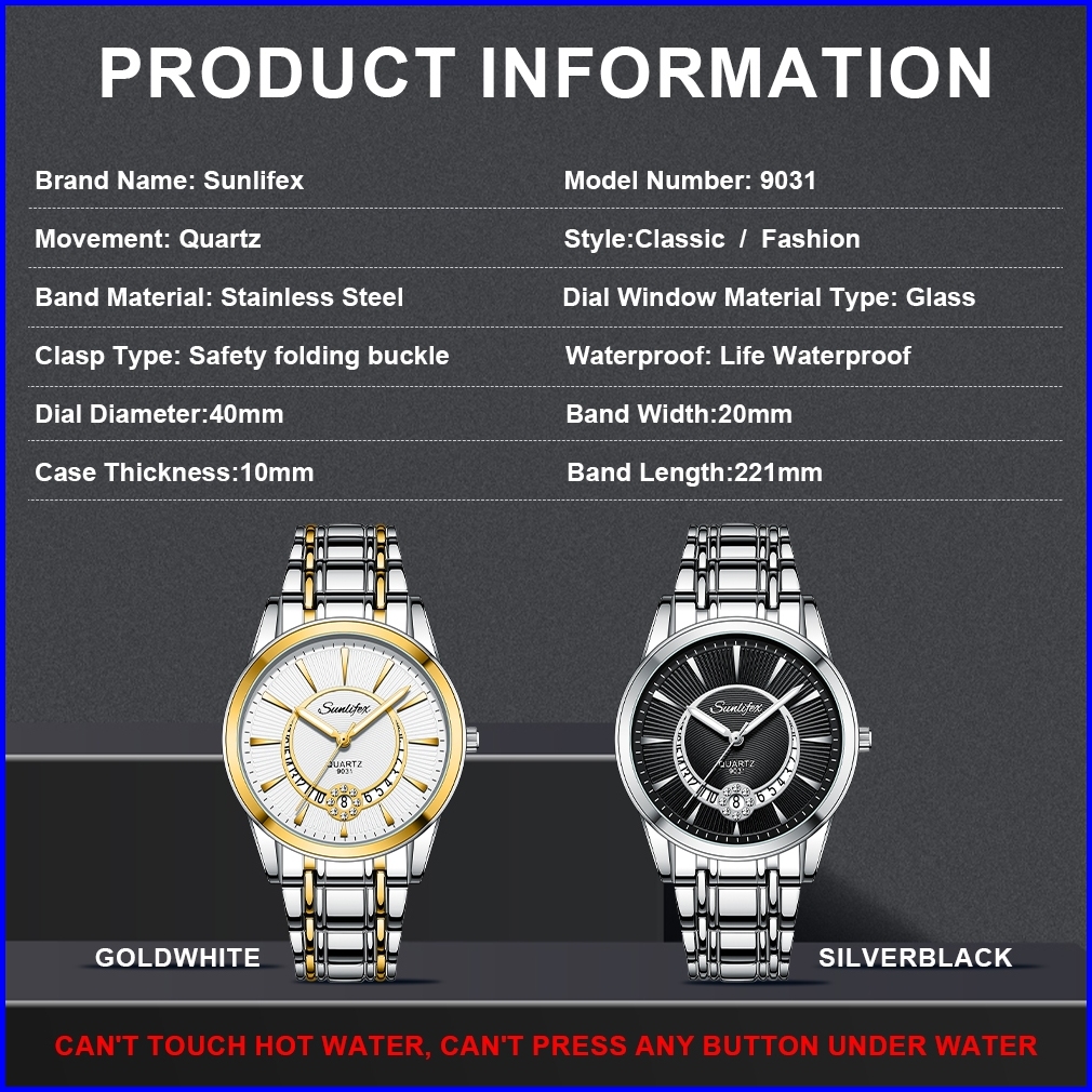 Sunlifex Jam Tangan Pria 9031 Calendar Bercahaya Original Anti Air Bisnis Jam Tangan Cowok
