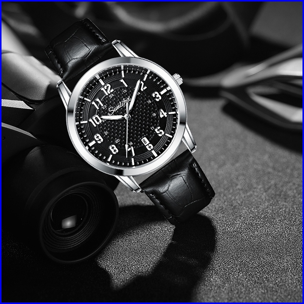 Sunlifex Jam Tangan Pria Anti Air Original Display Kuarsa Calendar Tali Kulit Jam Tangan Cowok Klasik