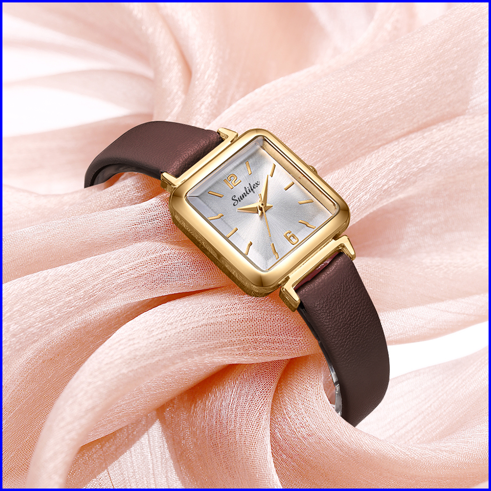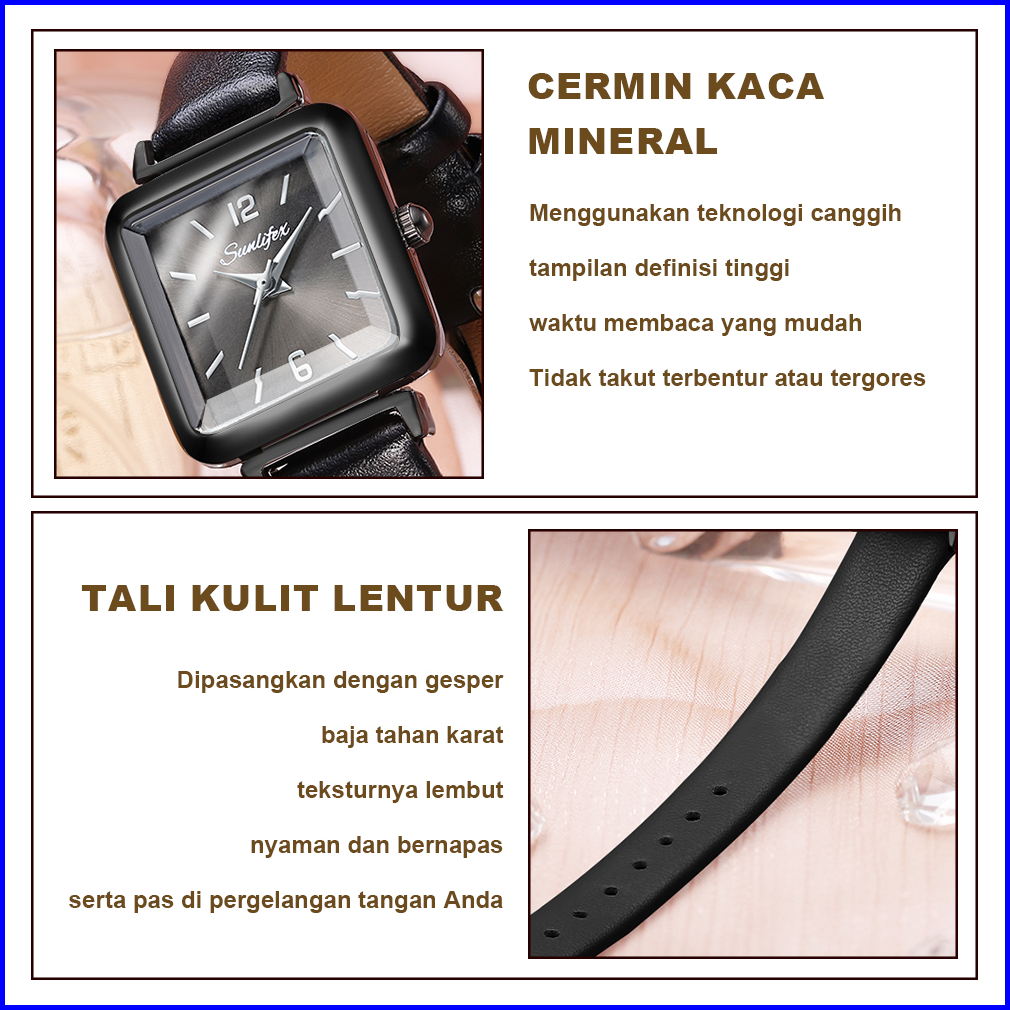 Sunlifex Jam Tangan Wanita 8004 Original Korea Kecil Anggun Tali Kulit Jam Tangan Cewek