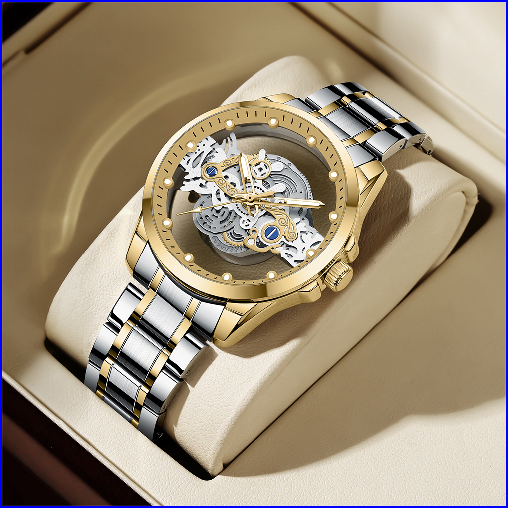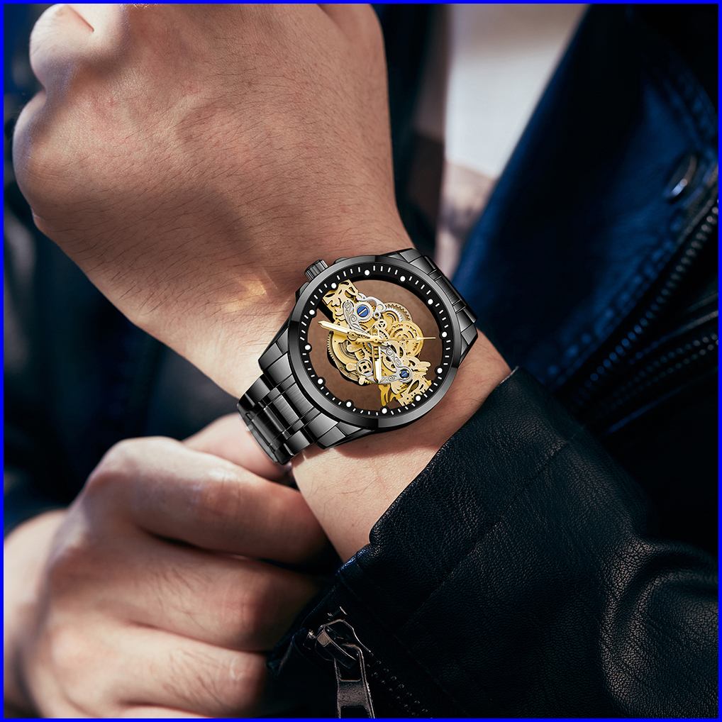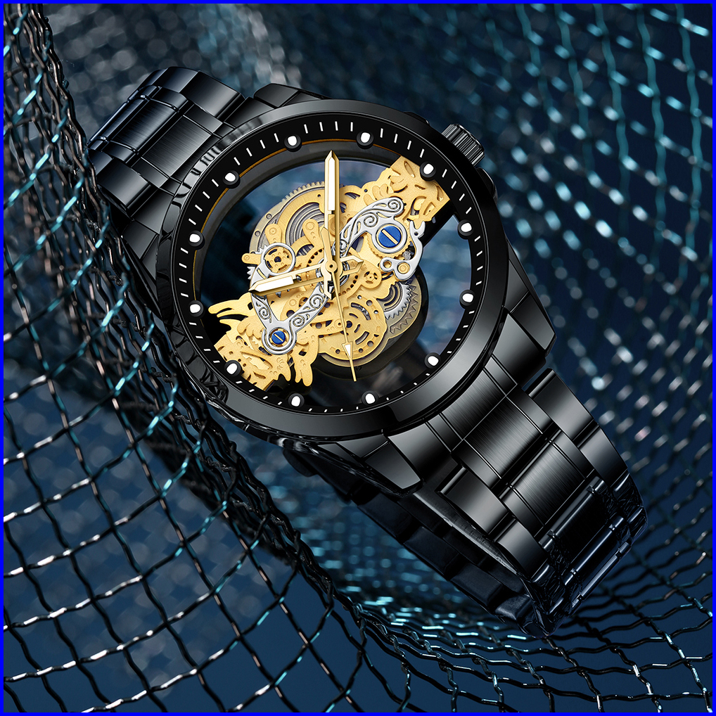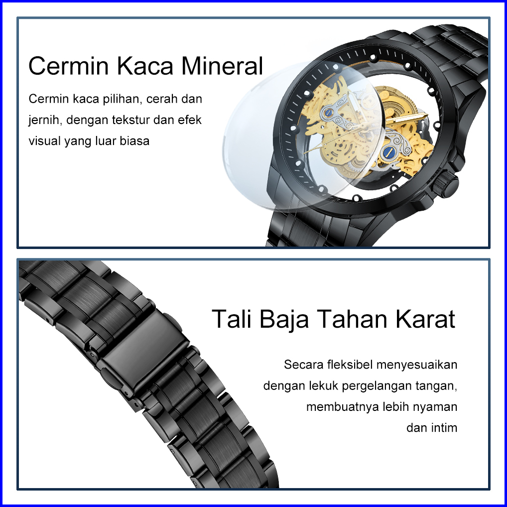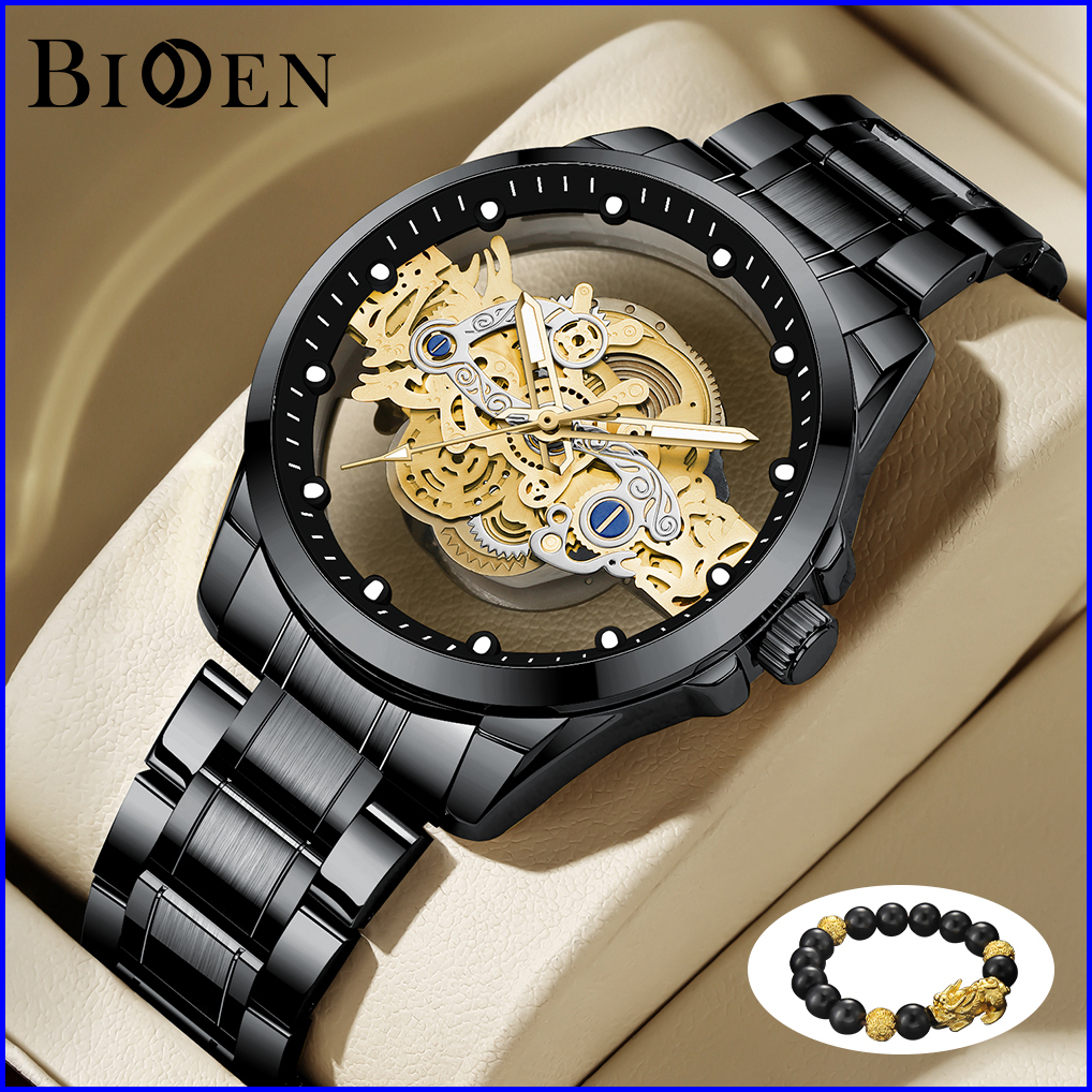 Biden Jam Tangan Pria Anti Air Transparan Dial Cool Kuarsa Tali Stainless Steel Jam Tangan Cowok