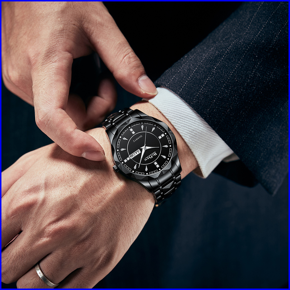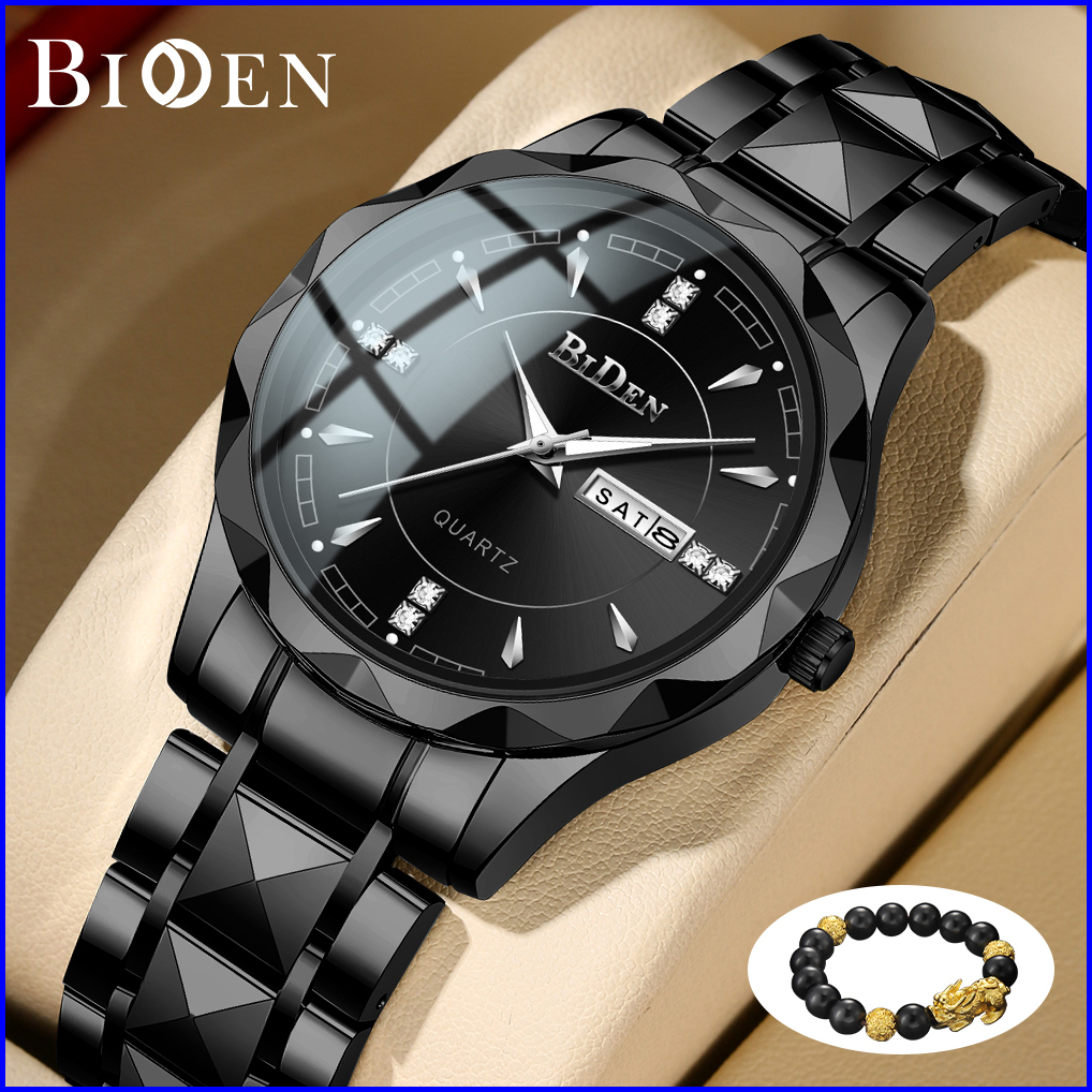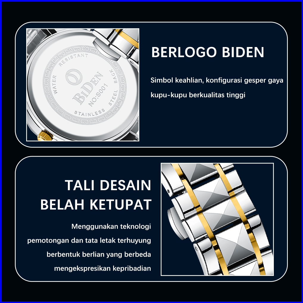 Biden Jam Tangan Pria Anti Air Original Kalender Kuarsa Kemewahan Mode Tali Stainless Steel Jam Tangan Cowok