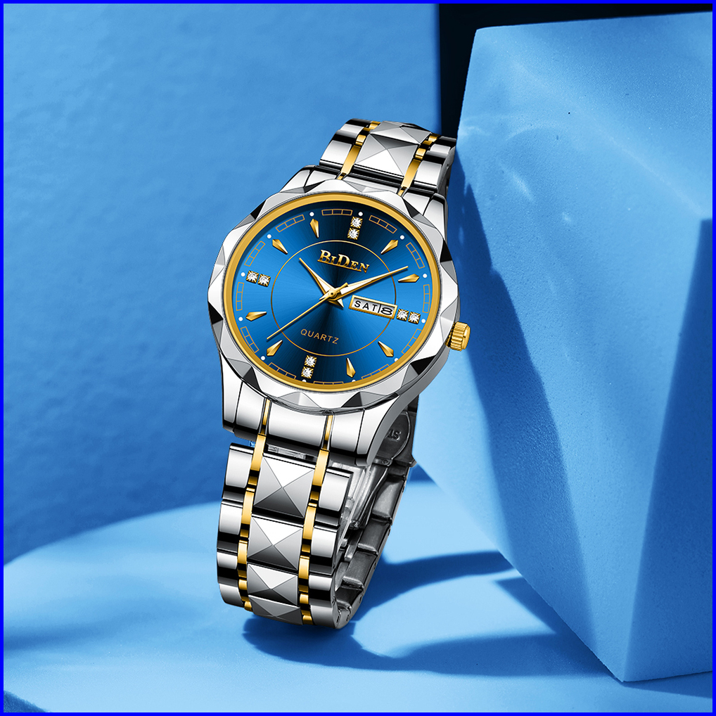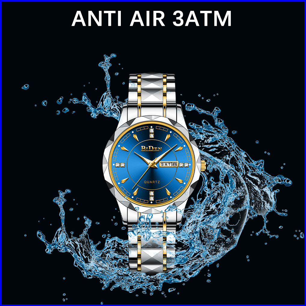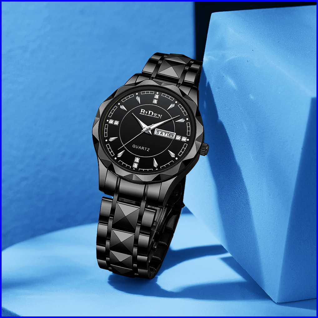Biden Jam Tangan Pria Anti Air Original Kalender Kuarsa Kemewahan Mode Tali Stainless Steel Jam Tangan Cowok