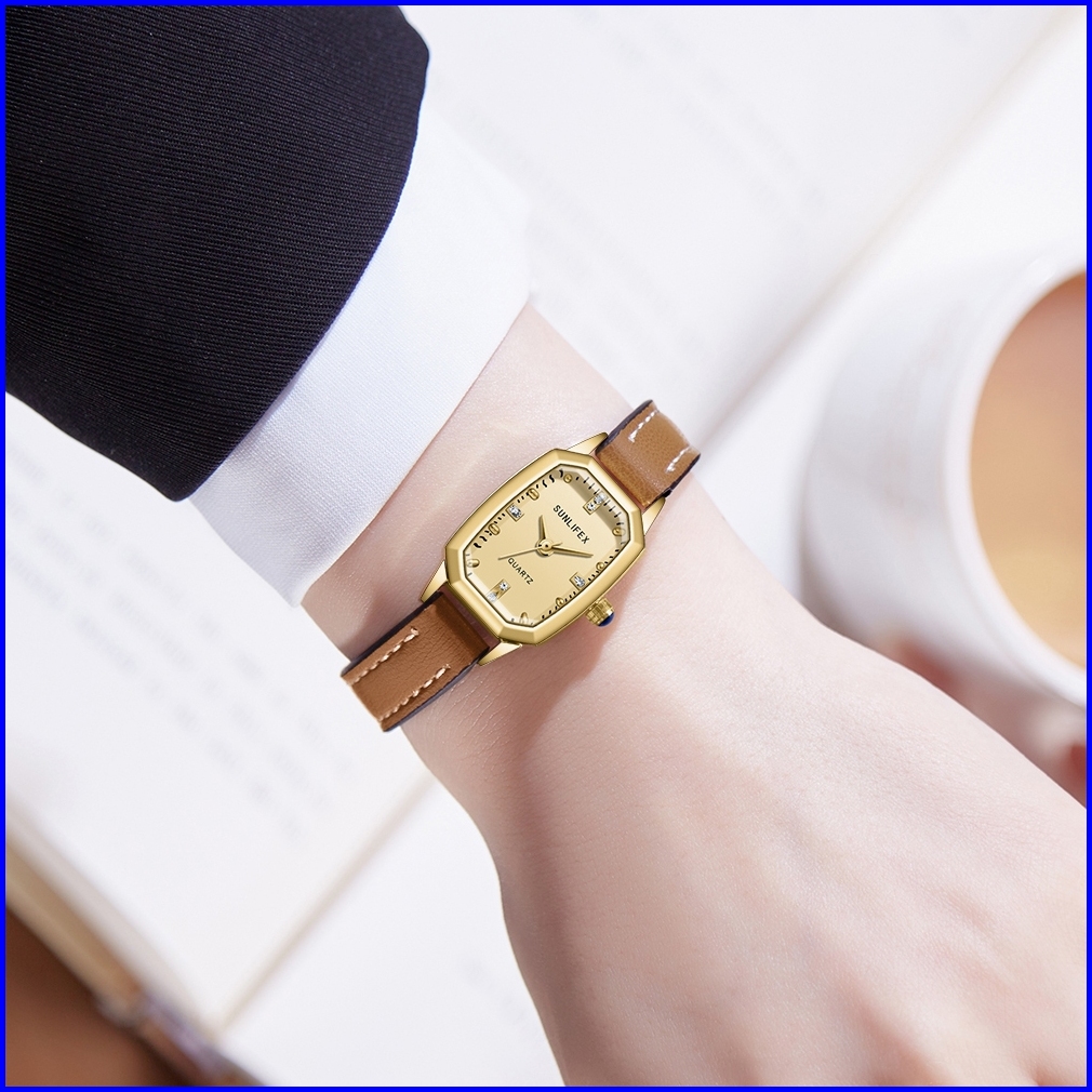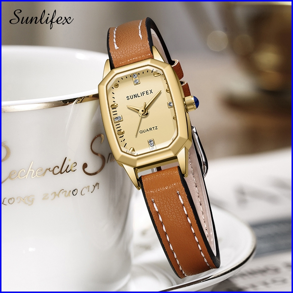 Sunlifex Jam Tangan Wanita Korea Antik Kasual Tali Kulit Elegan Kuarsa Jam Tangan Cewek Original