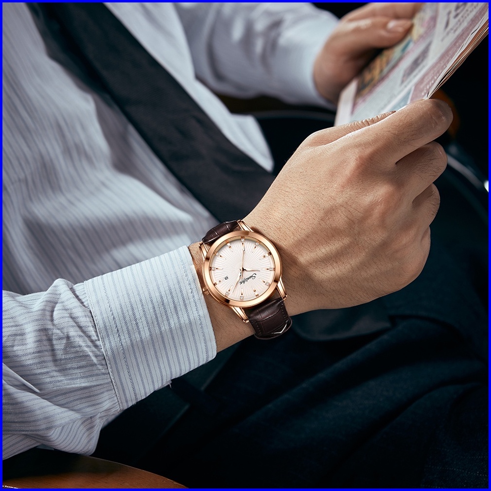 Sunlifex Jam Tangan Pria Original Kuarsa Bisnis Mode Anti Air Tali Kulit Jam Tangan Cowok 7006
