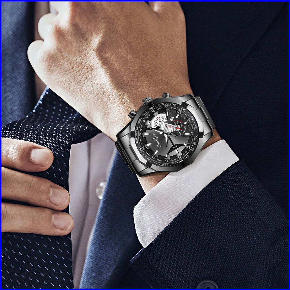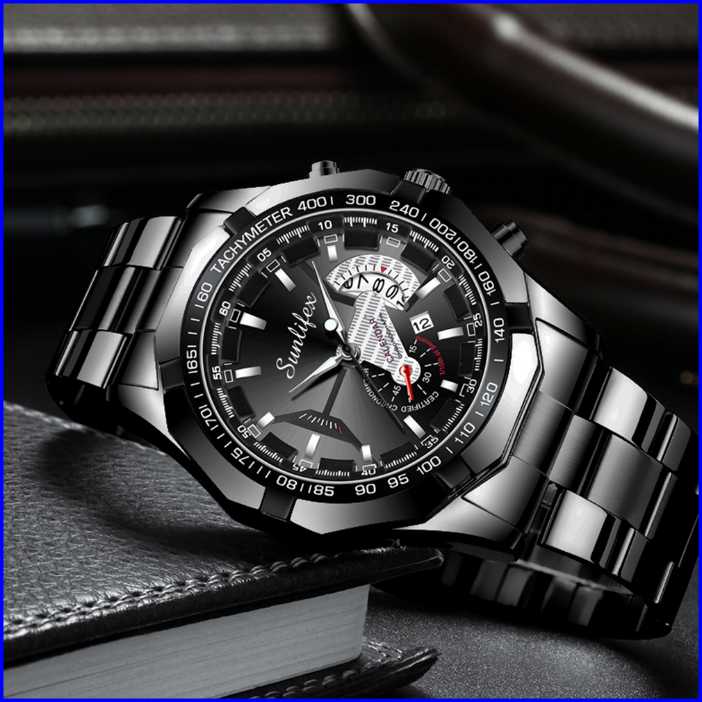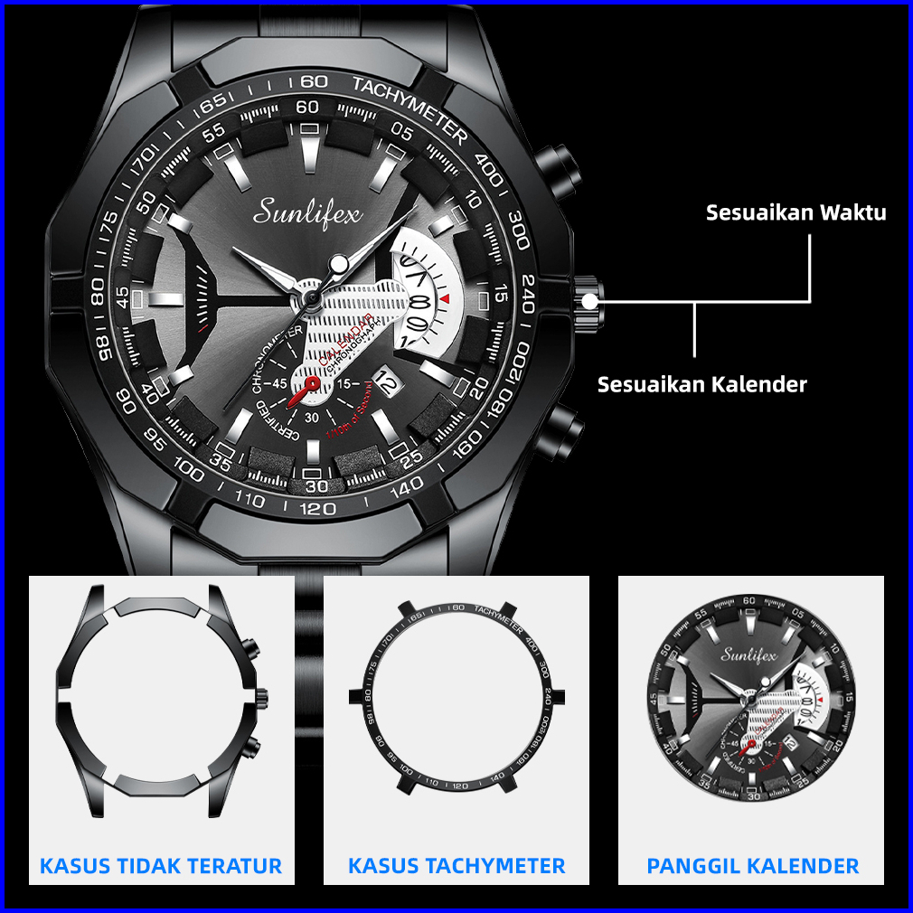 Sunlifex Jam Tangan Pria Kemewahan Mode Kuarsa Jam Anti Air Tali Stainless Steel Jam Tangan Cowok