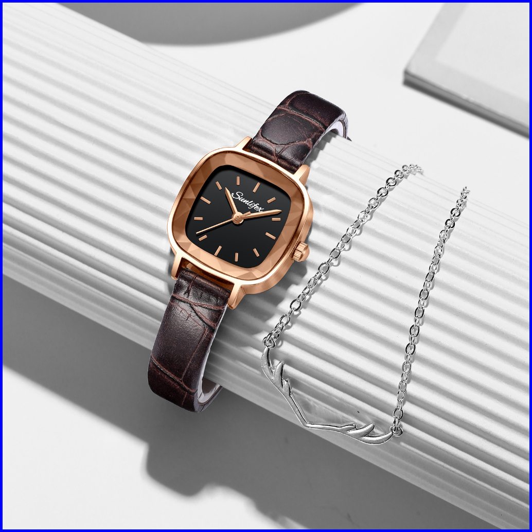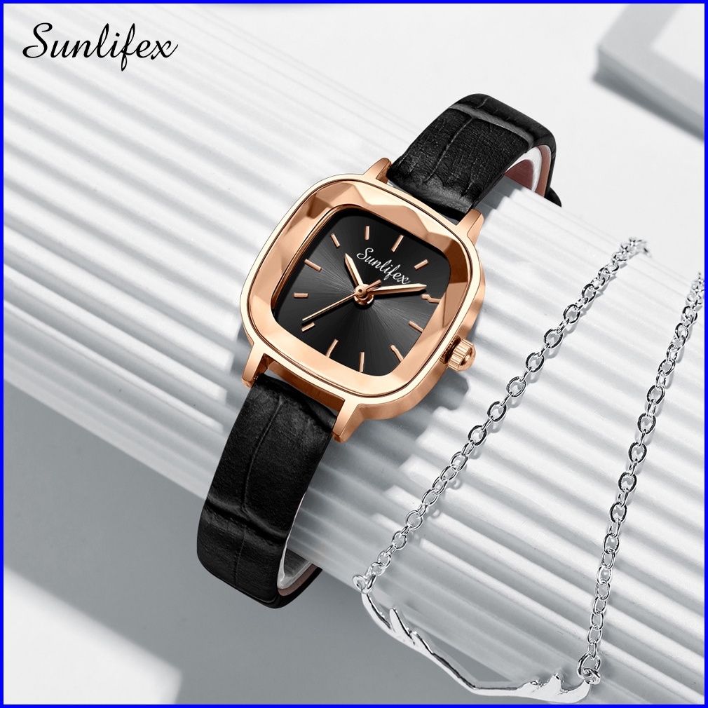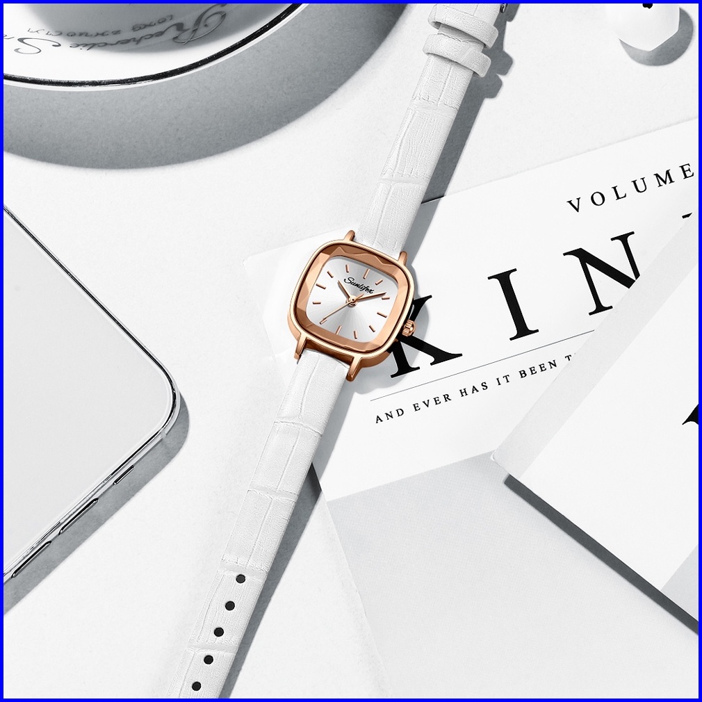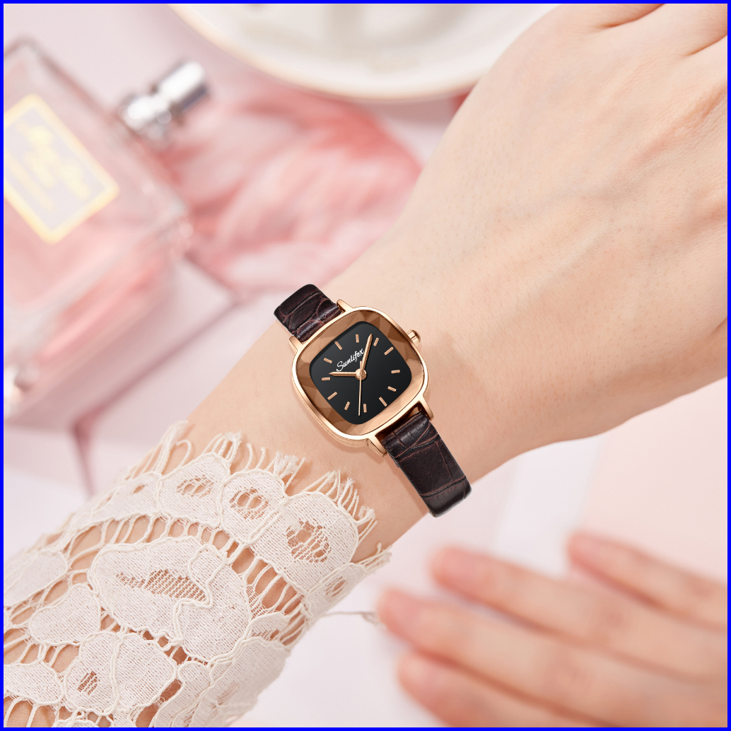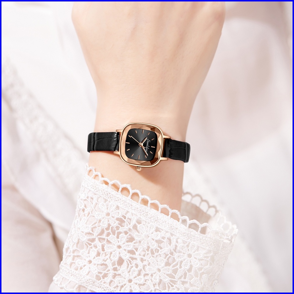Sunlifex Jam Tangan Wanita Kecil 8003 Jam Original Square Dial Tali Kulit Jam Tangan Cewek Anggun Santai