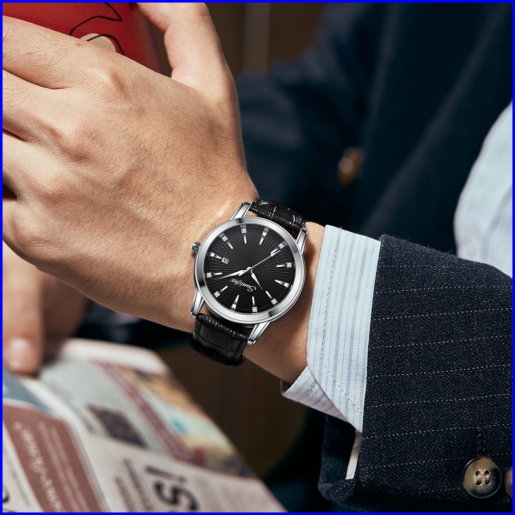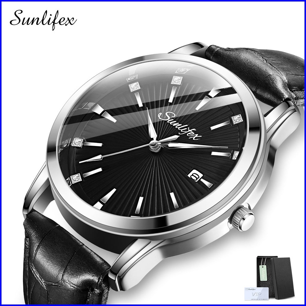 Sunlifex Jam Tangan Pria Kuarsa Anti Air Pria Tali Kulit Bisnis Mode Kalender Jam Tangan Cowok