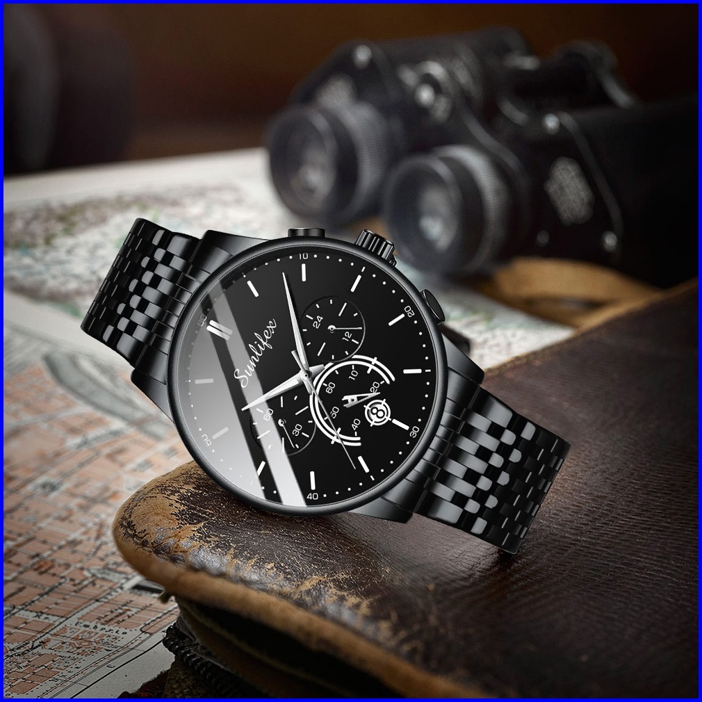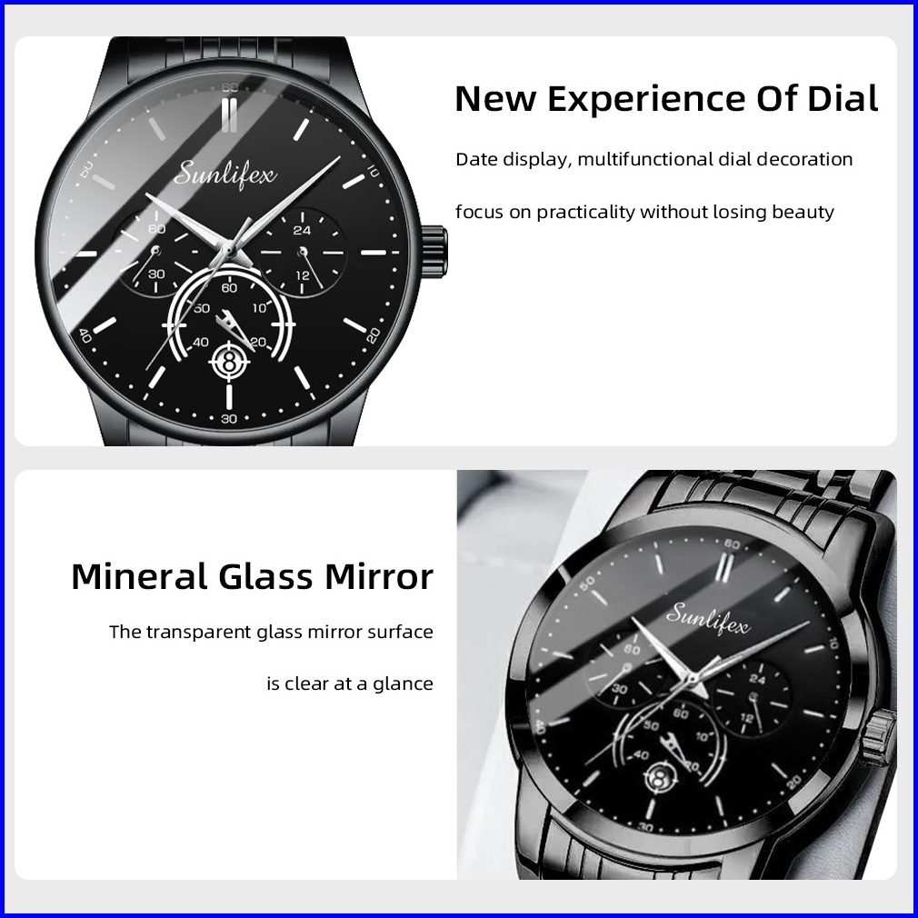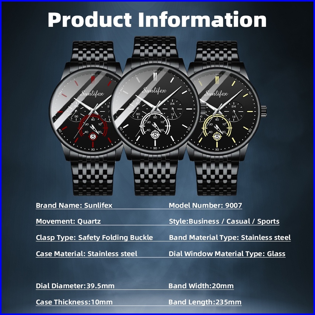 Sunlifex Jam Tangan Pria 9007 Original Kuarsa Bisnis Santai Tali Stainless Steel Jam Pria Anti Air Jam Tangan Cowok