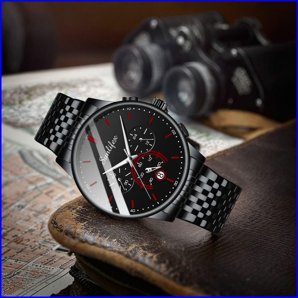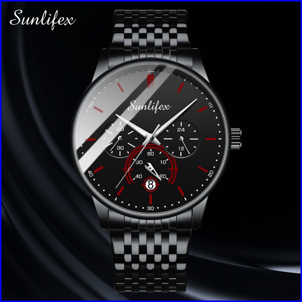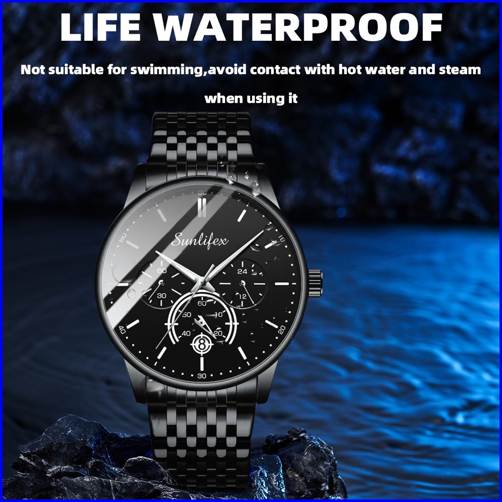 Sunlifex Jam Tangan Pria 9007 Original Kuarsa Bisnis Santai Tali Stainless Steel Jam Pria Anti Air Jam Tangan Cowok