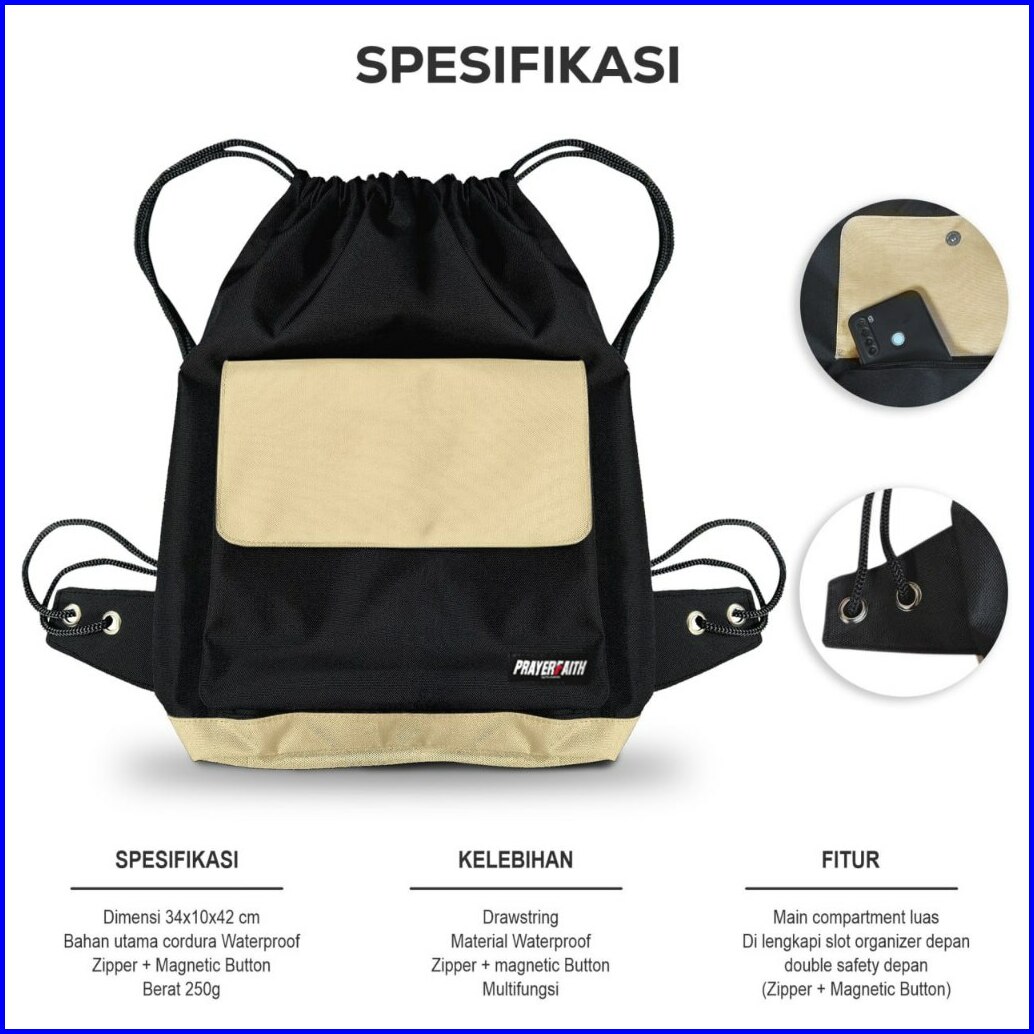 Prayerfaith - Tas Ransel Sekolah Backpack Punggung Pria Wanita Bahan Cordura Anti Air