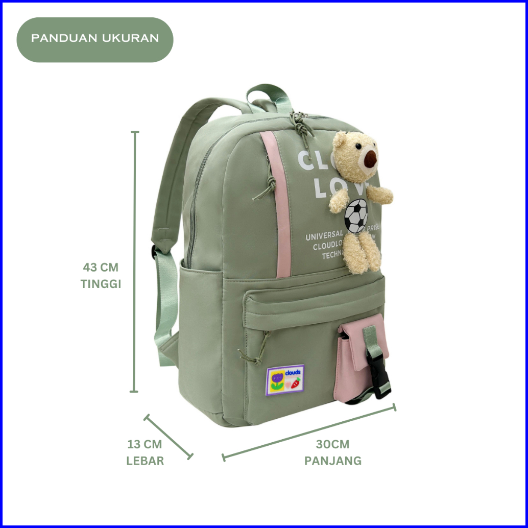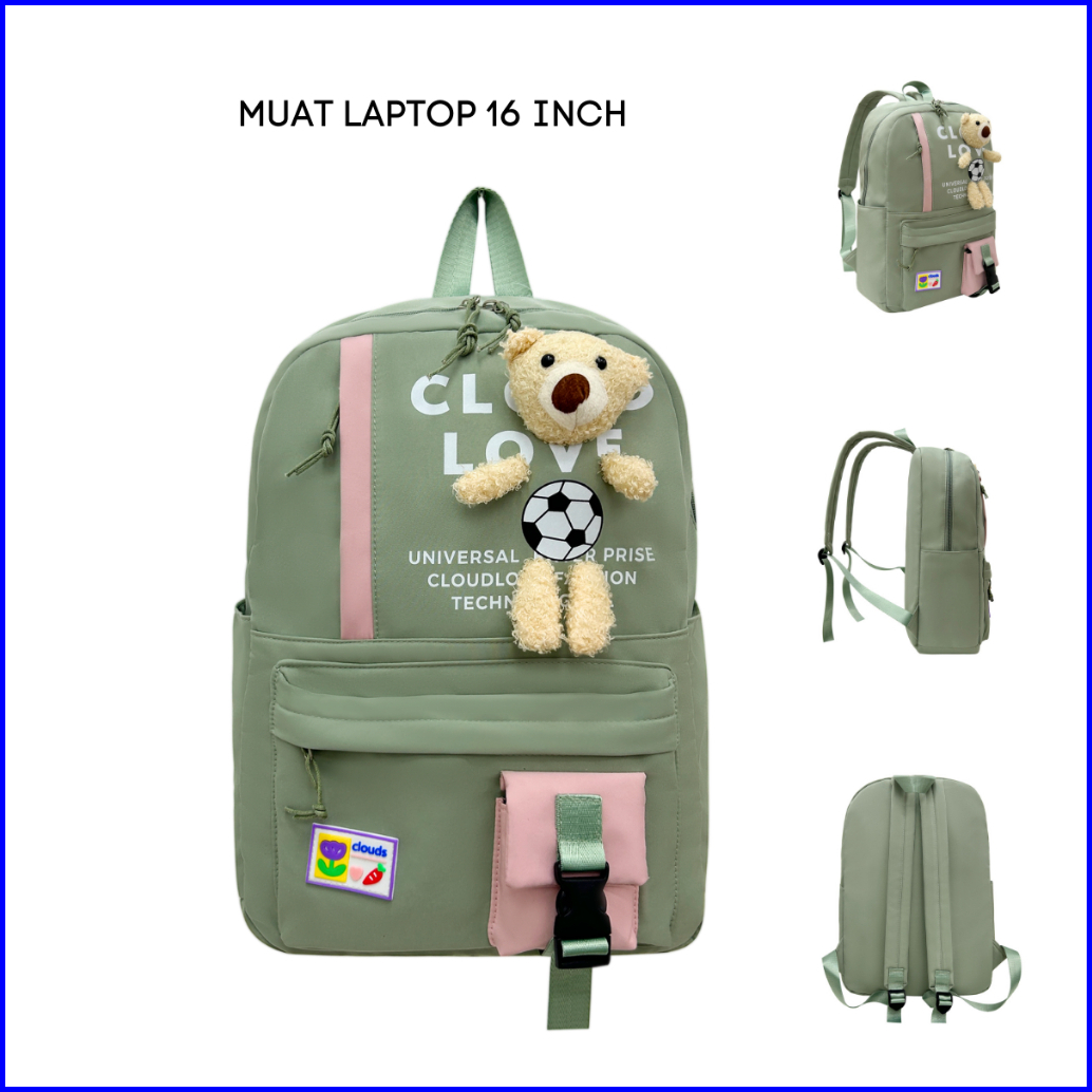 Tas Ransel Sekolah Remaja Clouds Love 92639 Backpack Remaja Muat Laptop 16inch Bahan Anti Air