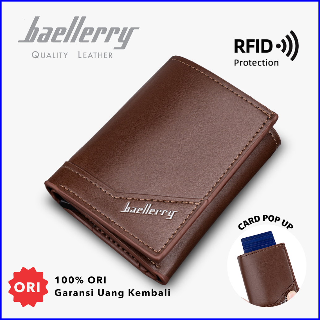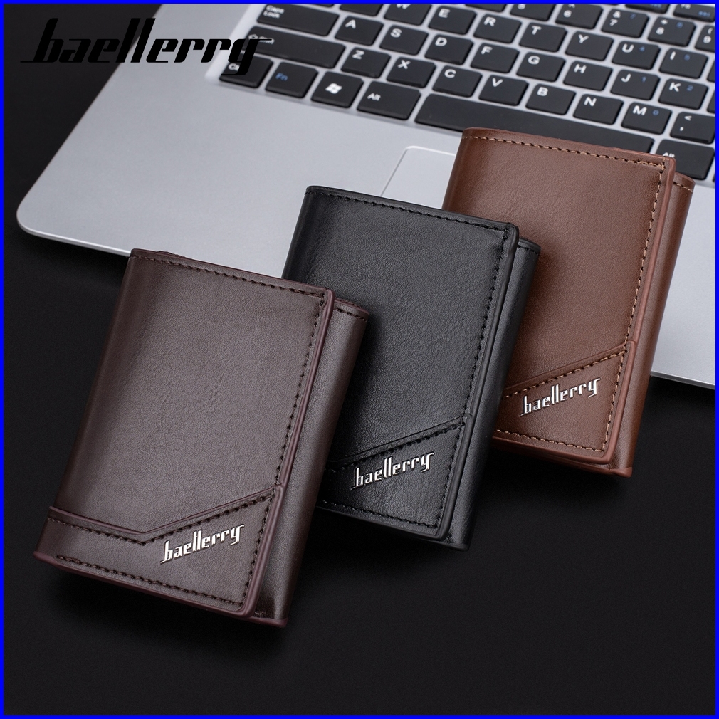 Baellerry K9214 Dompet Pria Lipat Pendek Kartu Bahan Kulit Pu Leather Premium Baeos