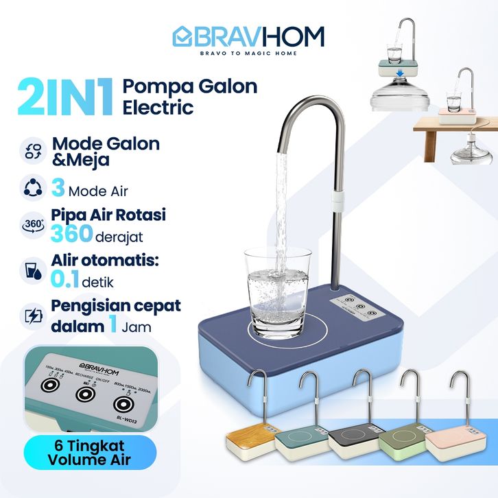 Dispenser panas dingin pompa air galon elektrik 2in1 portable bisa untuk luar ruangan BL-WD13 bravhome