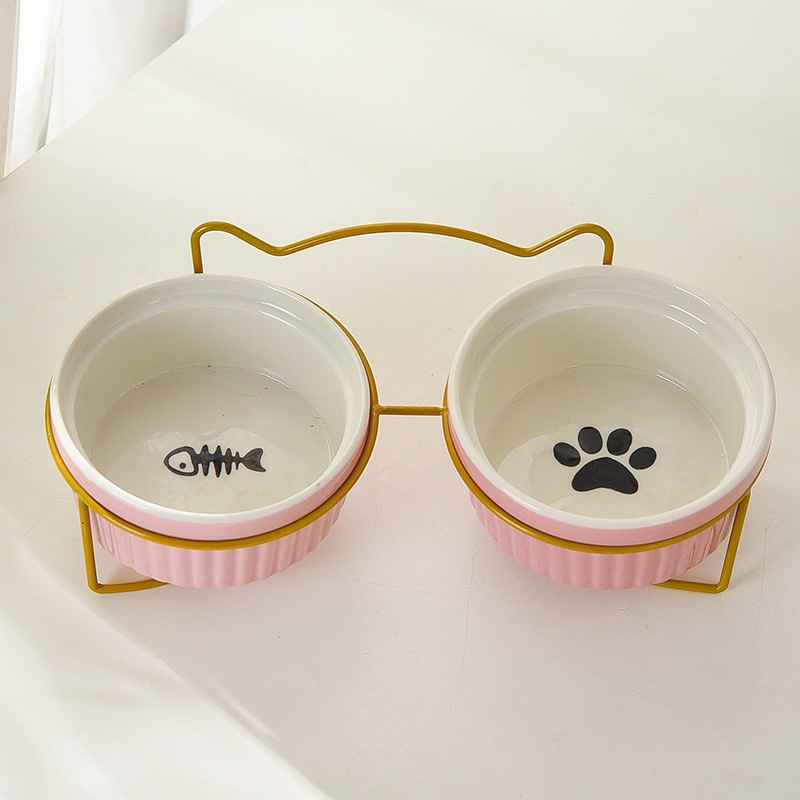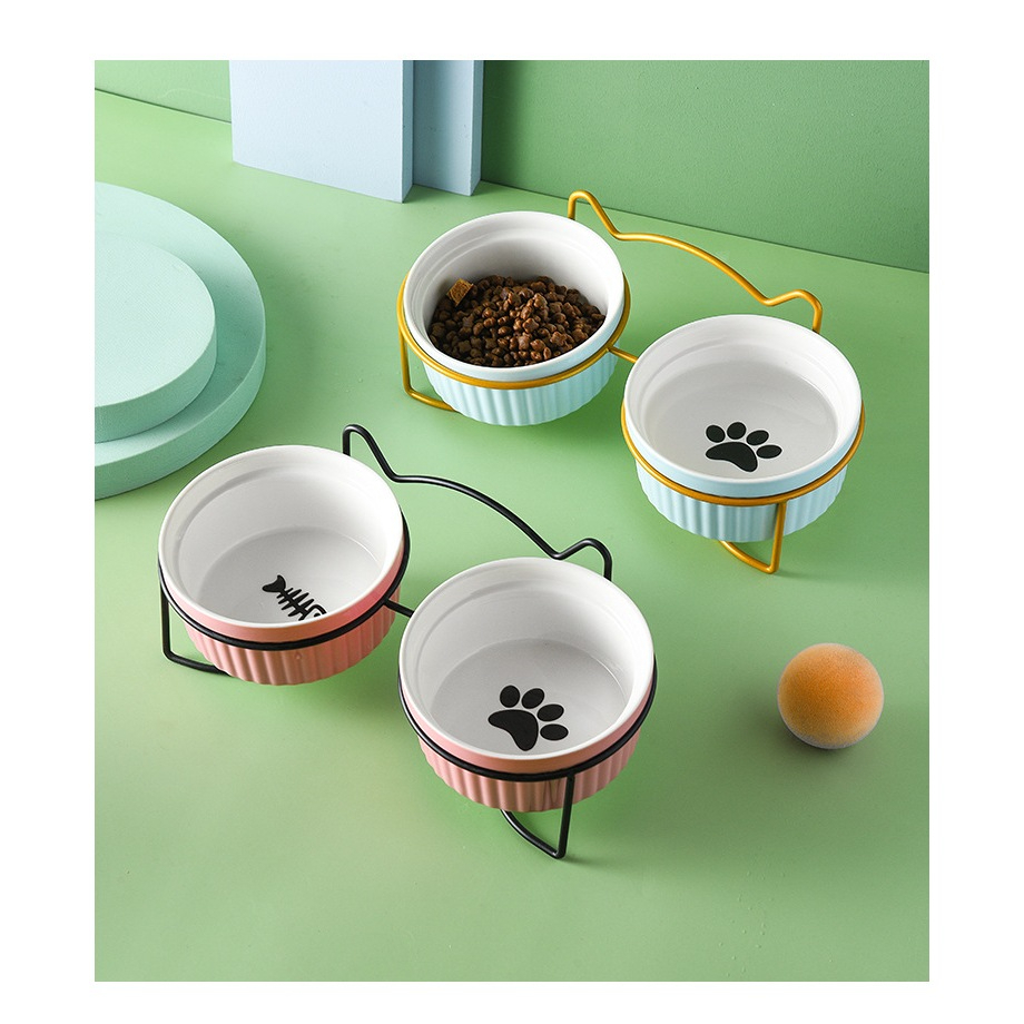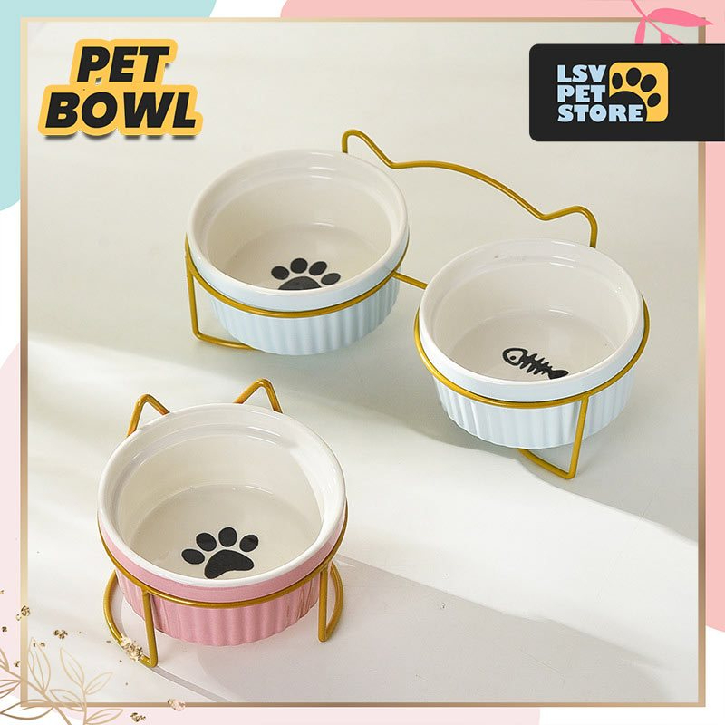 Mangkok Makan Set Anabul Mangkuk Keramik Colourfull Set Double Tempat Makan Kucing Anjing Pet Bowl Set Holder Stainless