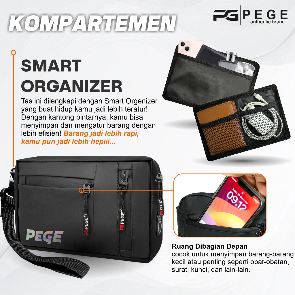 ( PROMO )Tas Selempang Pria 3in1 Waterproof PEGE Dayton Selempang Multifungsi bisa Pouch dan Handbag - PG 9042