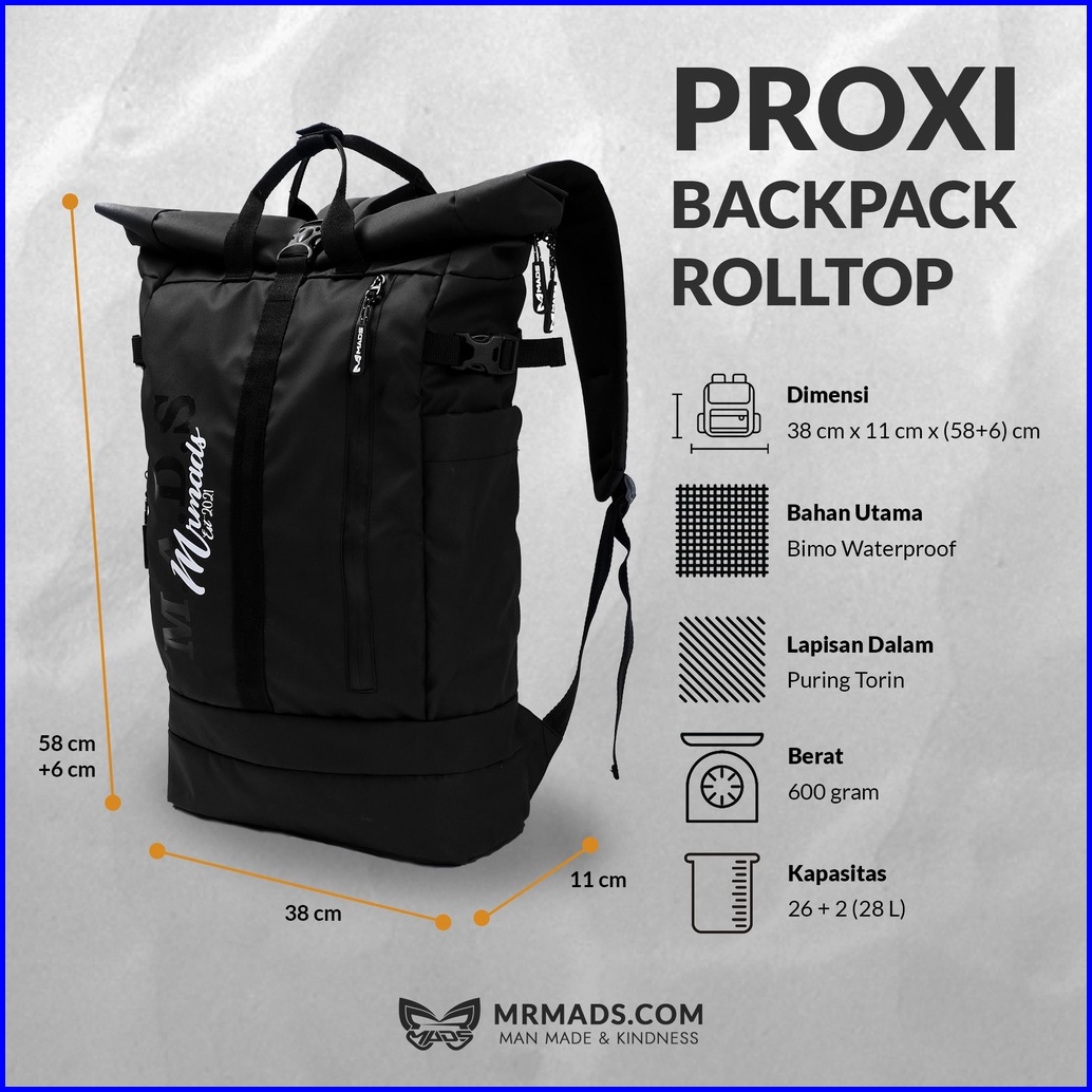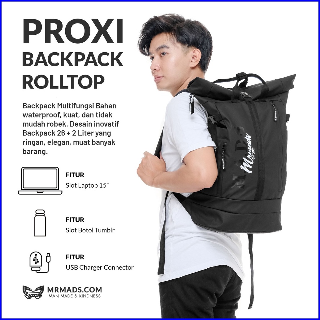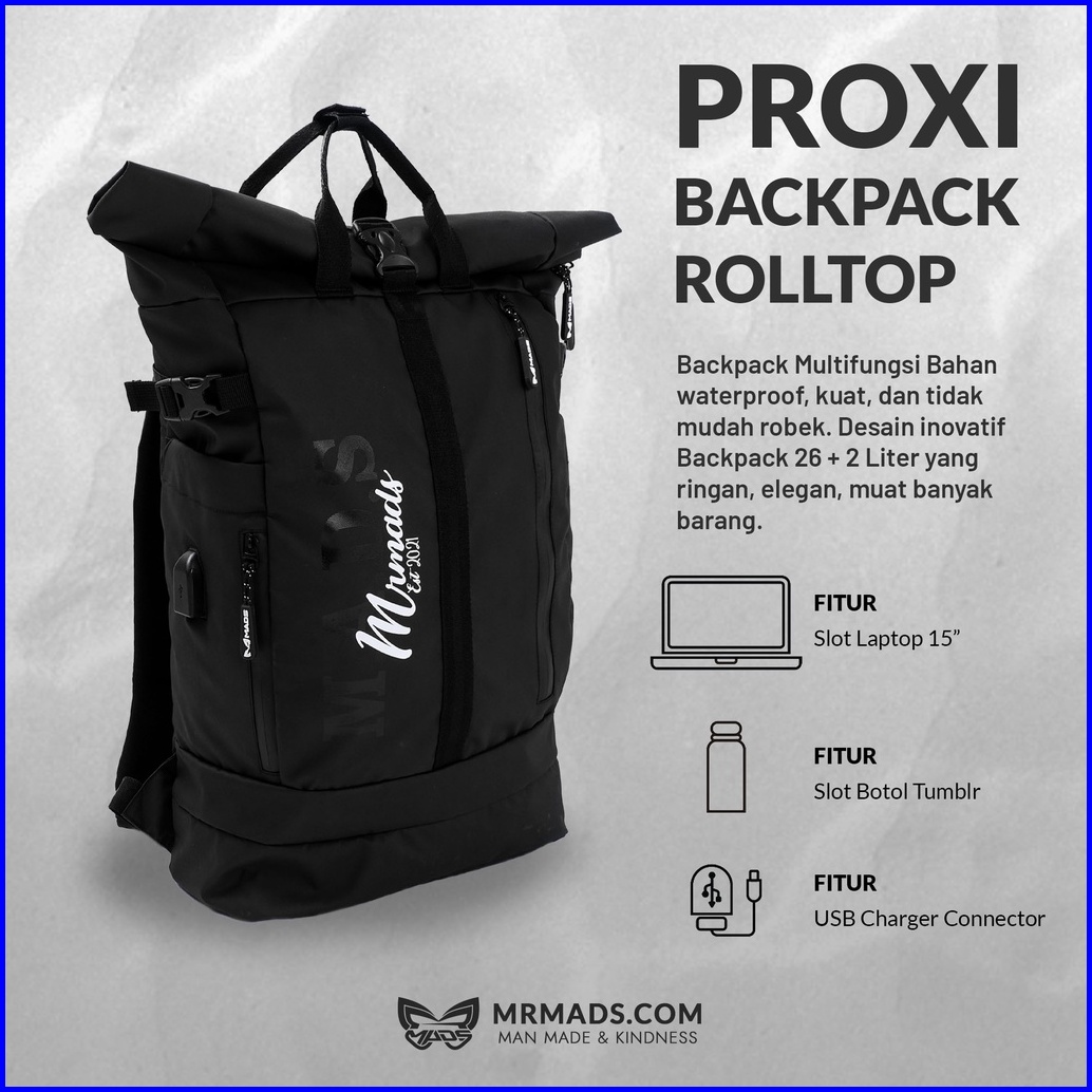 Mr Mads - Tas Ransel Pria - Proxi Backpack - Tas Backpack Unisex Up To 15.6 Inch - Tas Punggung Pria - Kapasitas 26l 2l