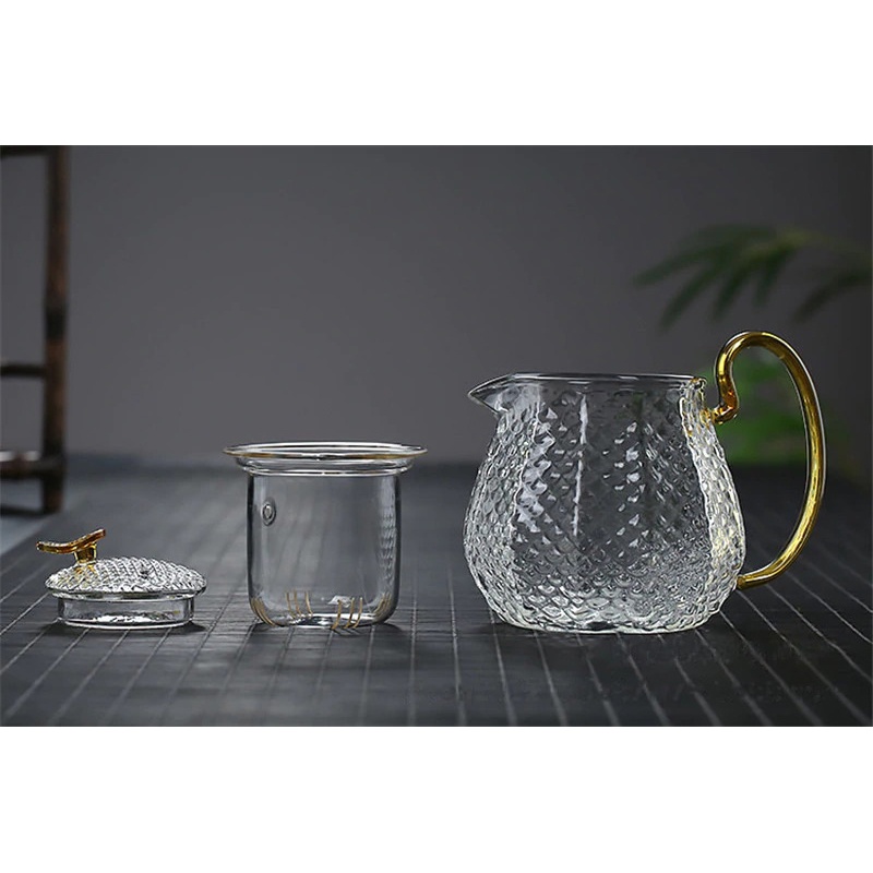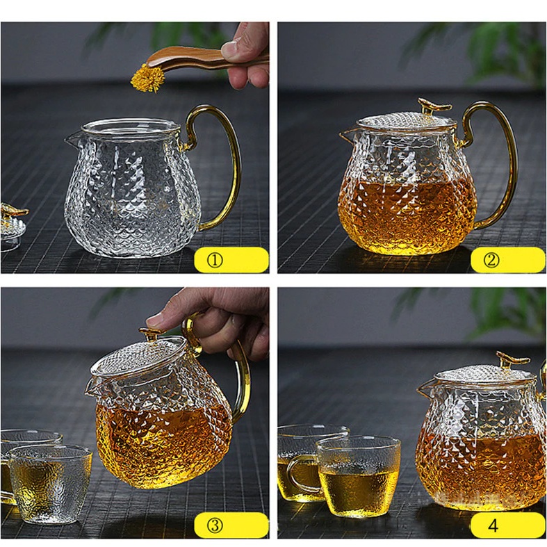 Teko Gelas Set Teko Pitcher Teh Chinese Teapot Maker Borosilicate Glass 600ml with 4 Glass