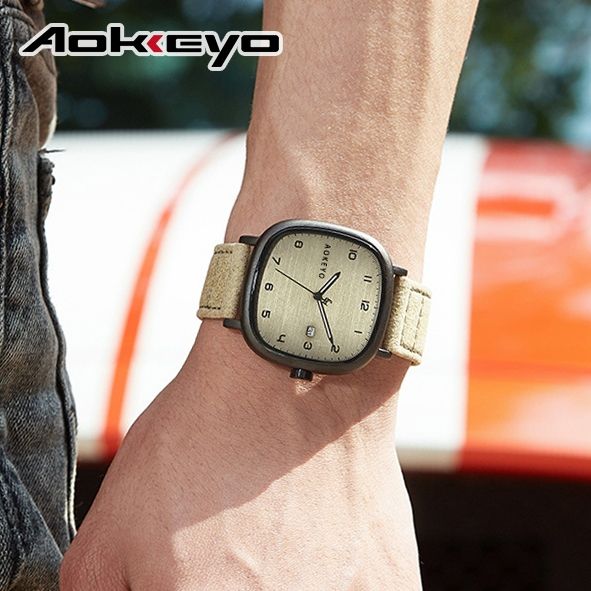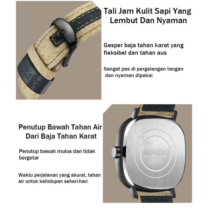 JAM TANGAN PRIA/ AOKEYO F043 JAM TANGAN PRIA KULIT ANATI AIR ORIGINAL TERBARU CASUAL TAHAN AIR SQUARE LEATHER