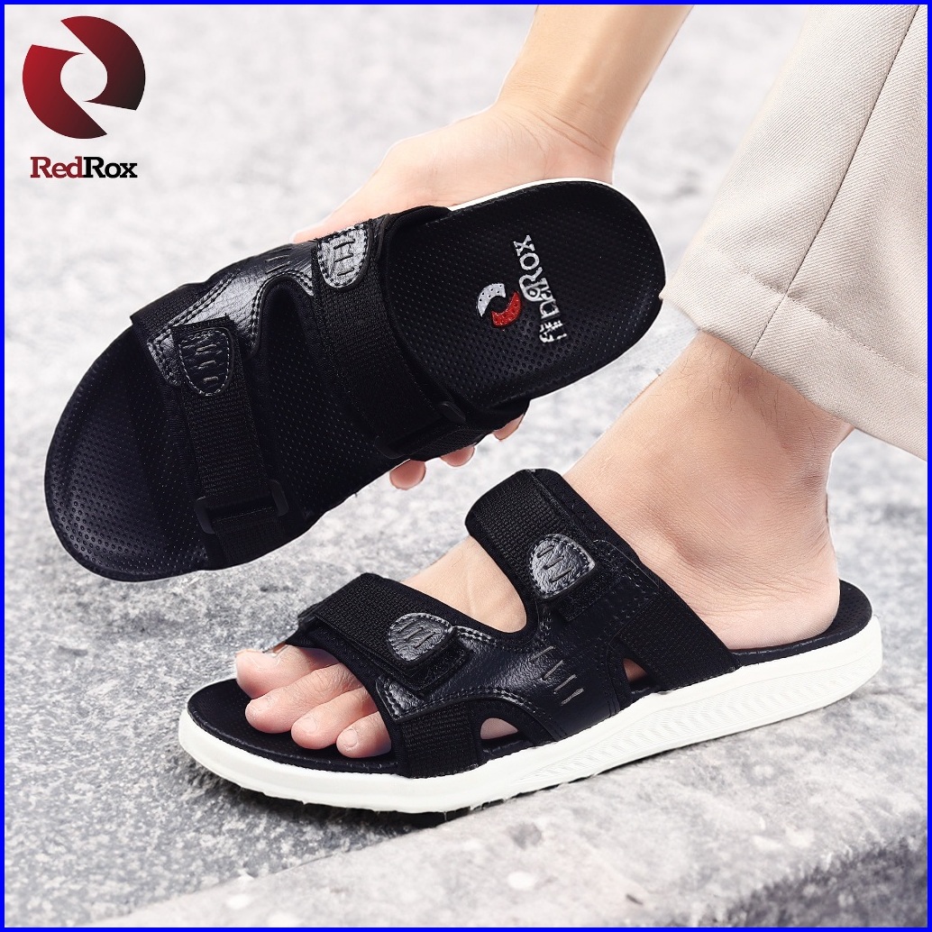 Redrox - Sandal Slide Pria Casual Man Strap White Or Black Shoes Selop Sendal - Voxt 10