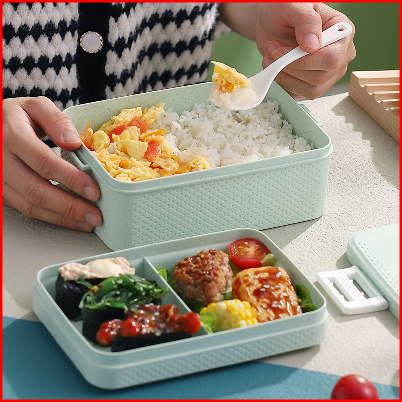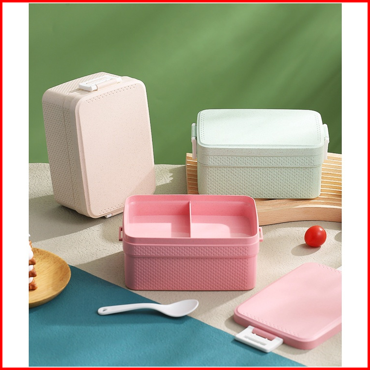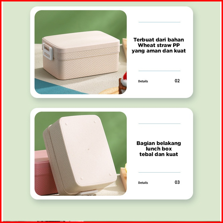 Lunch Box Kotak Makan Pp Jerami Gandum Tempat Bekal Set Alat Makan Sendok Lunch Box Bpa Free