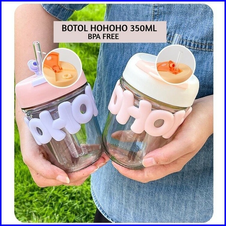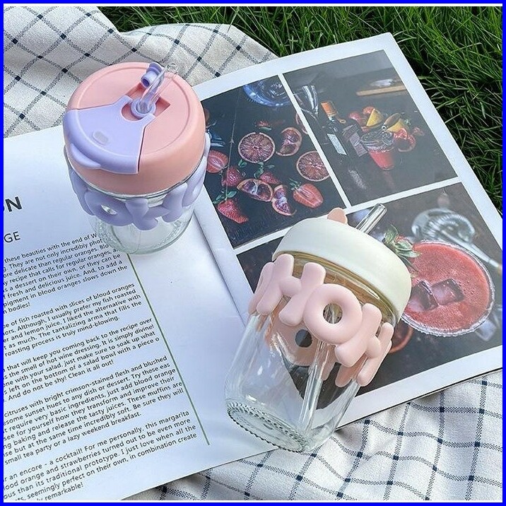 Tumbler Gelas Kaca Hoho Gelas Kopi 350 Ml Aesthetic Cup Dengan Sedotan Kaca