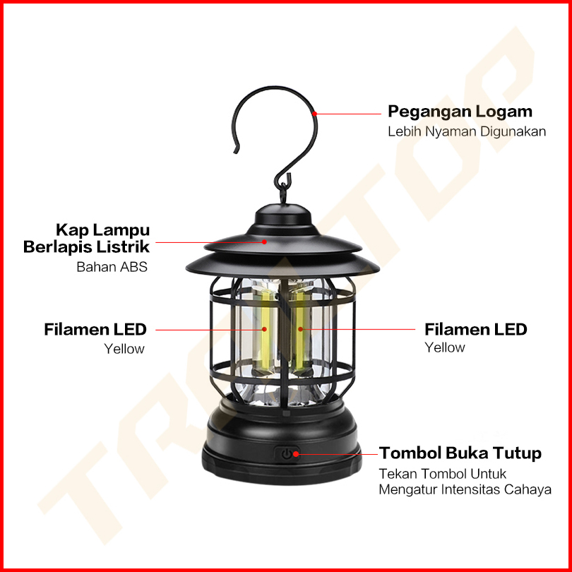 Lampu Lentera Led Canping Lamp 3 Cob Lampu Tenda Camping Tent Led Emergency
