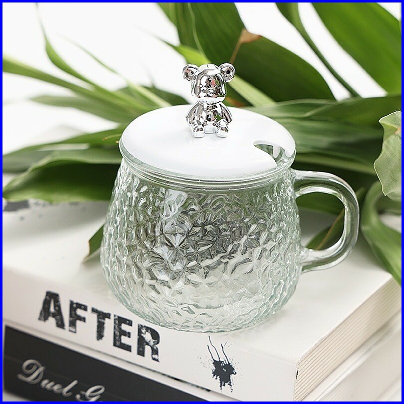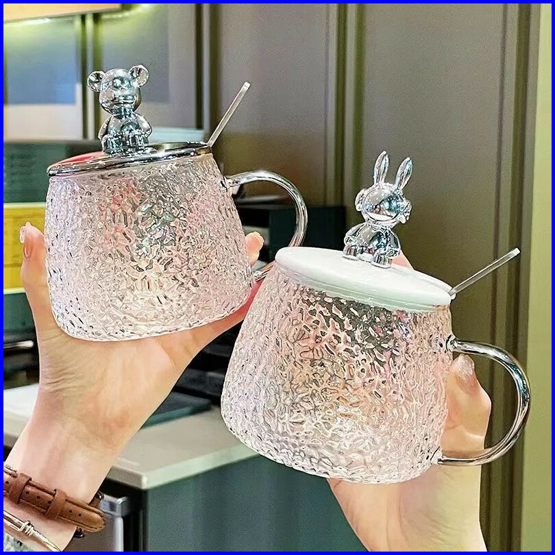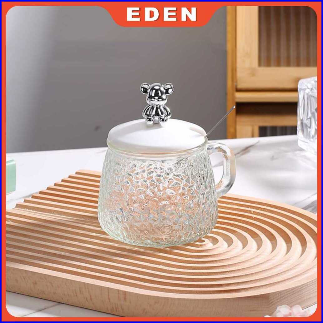 Eden - Gelas Kaca Aesthetic Korea 350ml Coffee Cup Elegan Sendok Souvenir Cantik