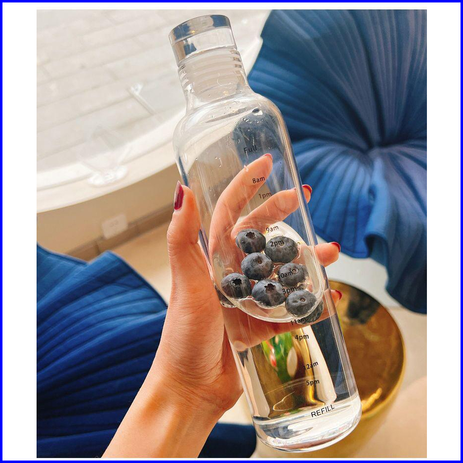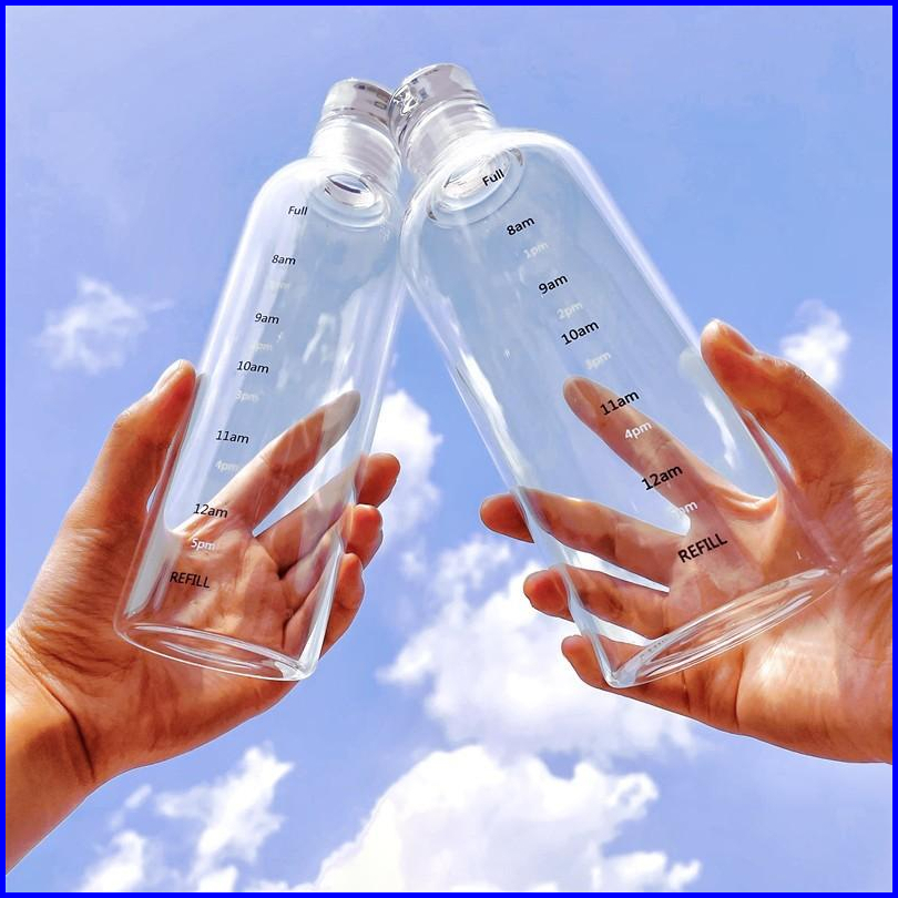 Botol Minum Sport Anti Bocor Botol Transparan Tumbler Olahraga Botol Portable Dengan Panduan Jam