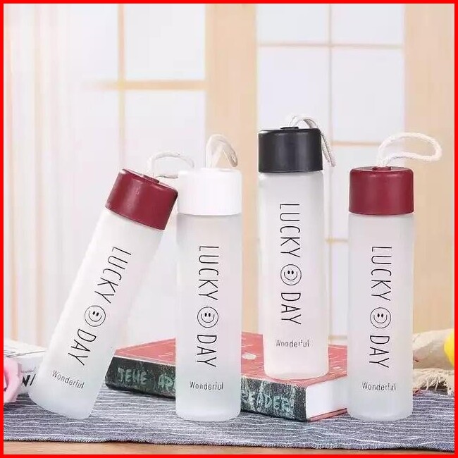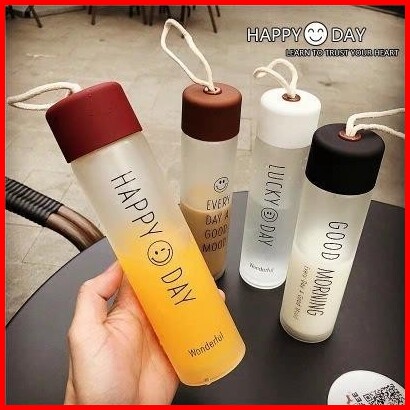 Botol Lucky Day Good Morning Happy Day Botol Minum Simple Kaca Botol Minum 400ml