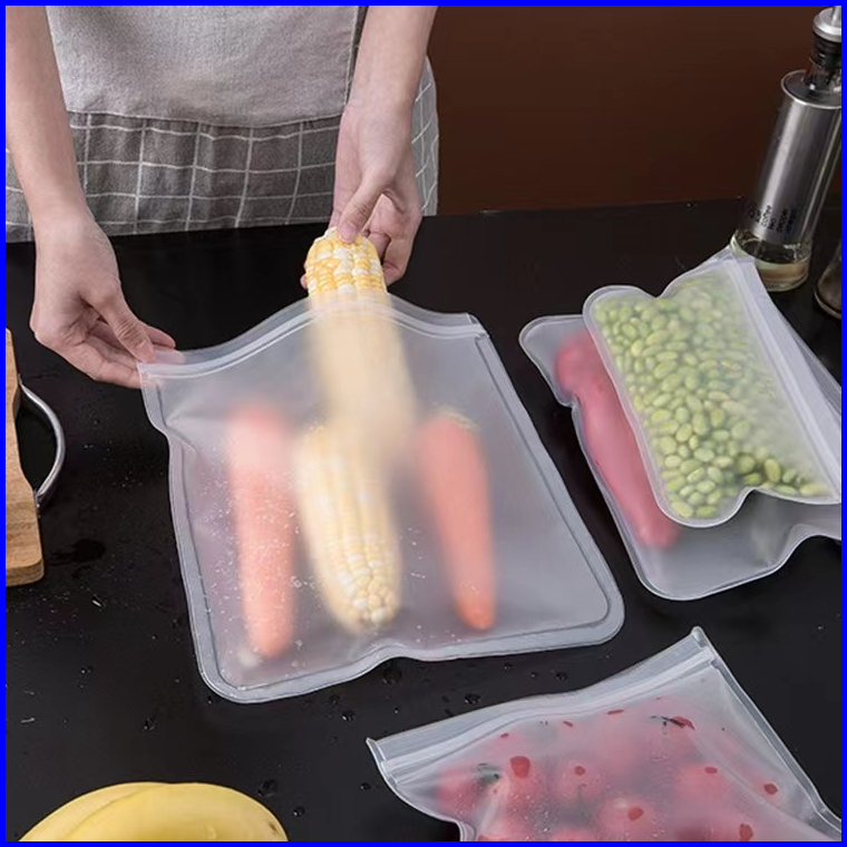 Mte Reusable Silikon Food Bag Kantong Penyimpanan Makanan Kedap Udara Zipper Pouch